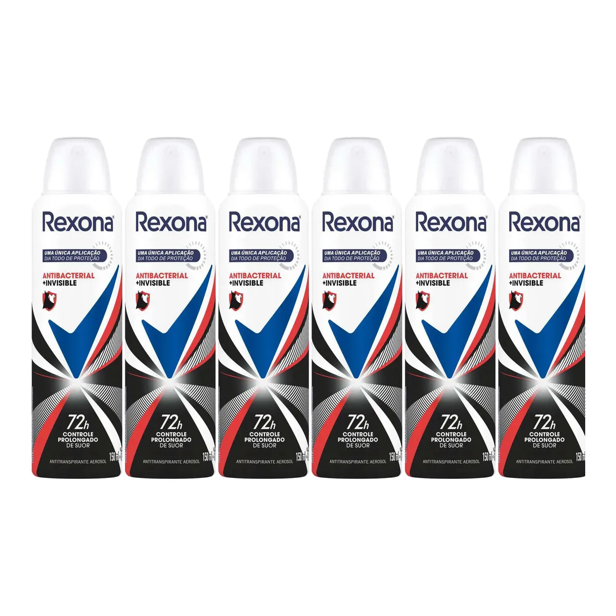 KIt Desodorante Antitranspirante Aerosol Rexona Antibacterial + Invisible Feminino 72h 150ml 6 unidades