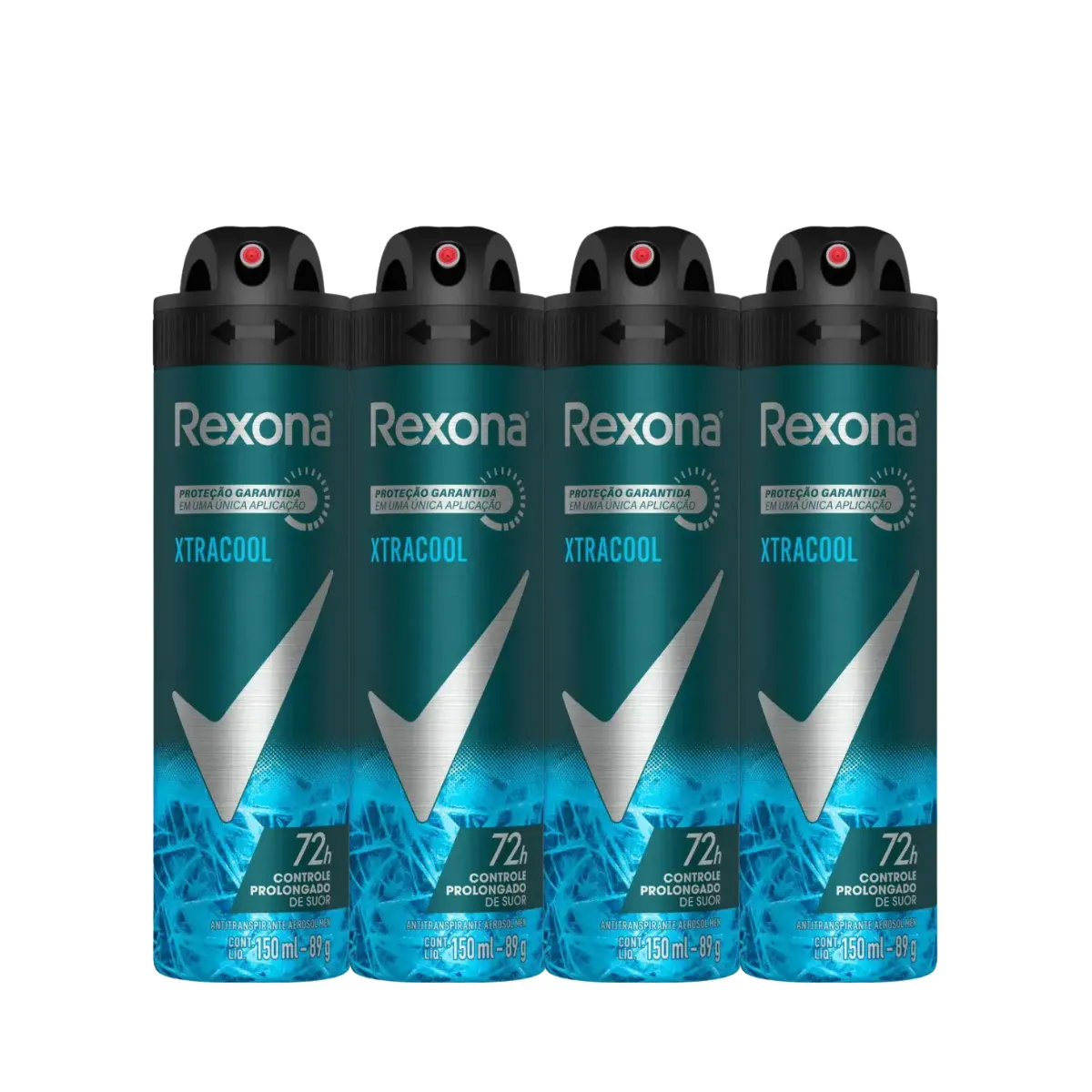 Kit Desodorante Antitranspirante Aerosol Rexona Men Xtracool 72h 150ml 4 unidades