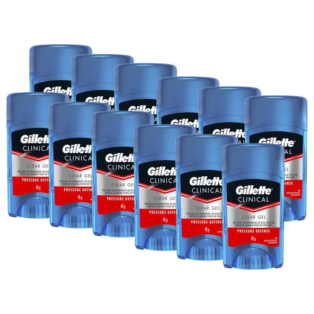 Kit Desodorante Gillette Clinical Gel Pressure Defense 45G Com 12 Unidades