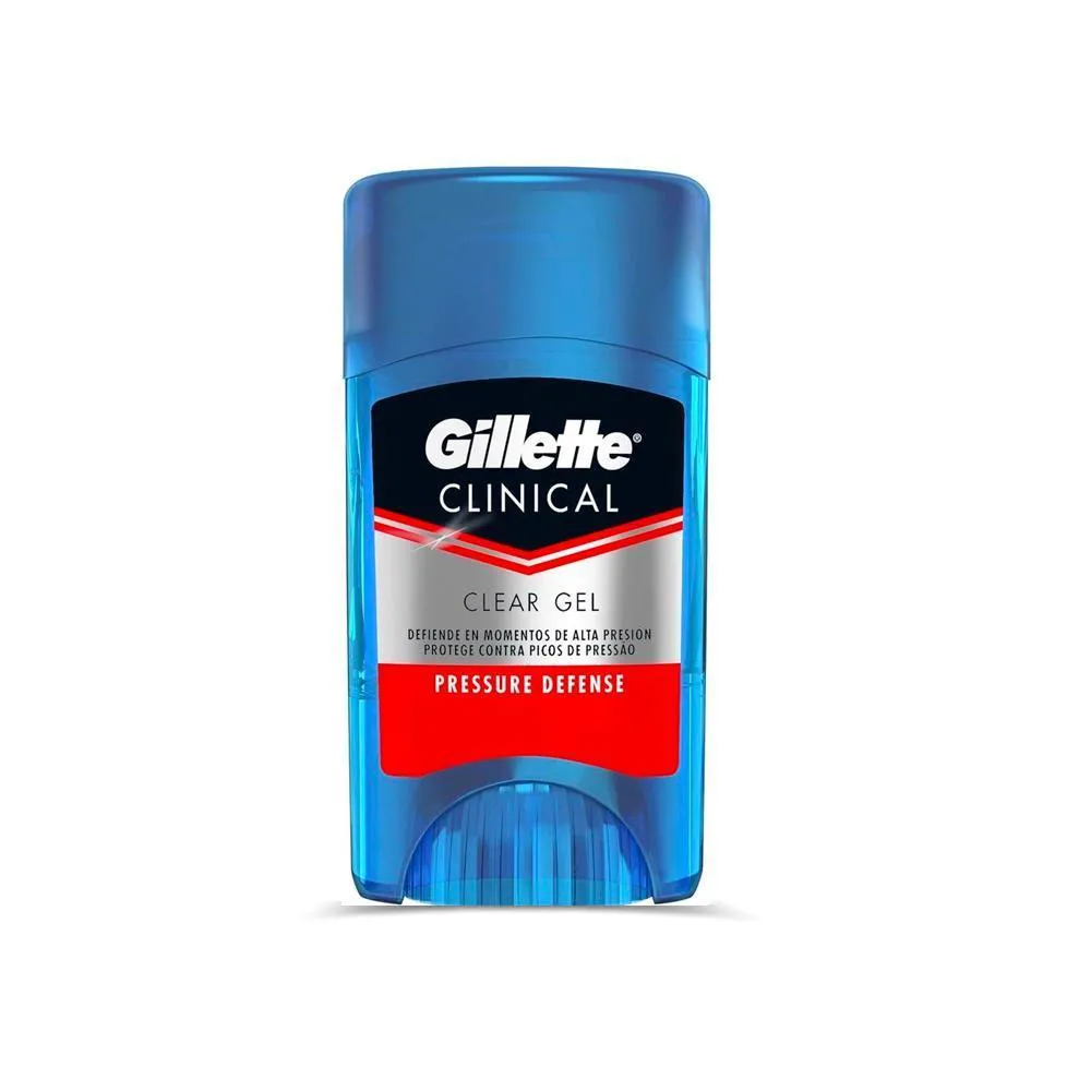 O Desodorante Clear Gel Gillette Clinical Pressure Defense 45g, produzido com a tecnologia Clinical Strenght, ele conta com 10.000 moléculas de combate ao mau cheiro. Possui elevada eficácia e na eliminação dos maus cheiros proporcionando proteção por até 48 horas. Sua aplicação em gel transparente, evita que as roupas fiquem manchadas.