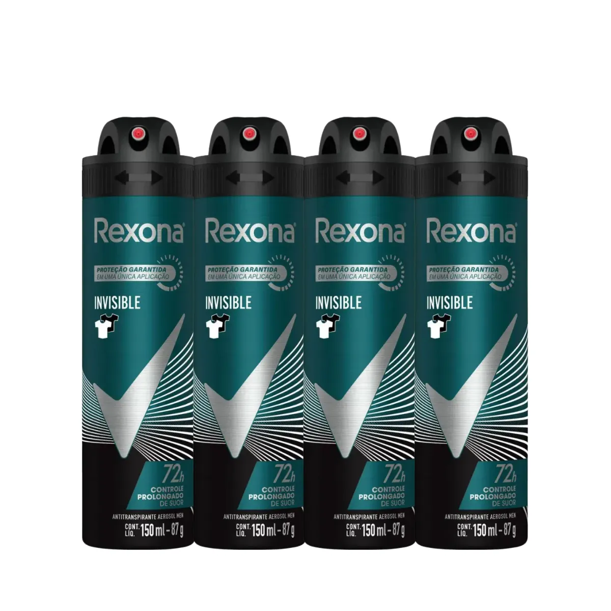 Kit Desodorantes Antitranspirante Aerosol Rexona Men Invisible 72h 150ml 4 unidades