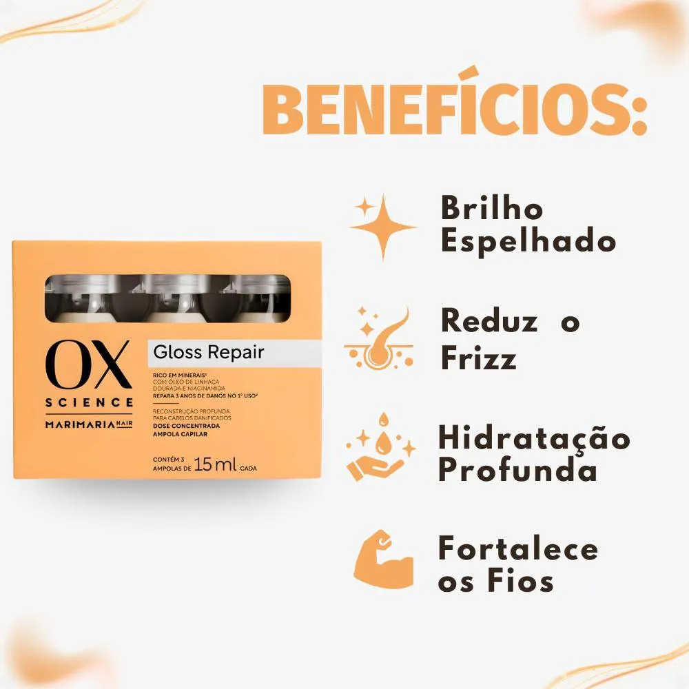 Kit Dose Concentrada Ox Science Mari Maria Hair Gloss Repair 15Ml com 3