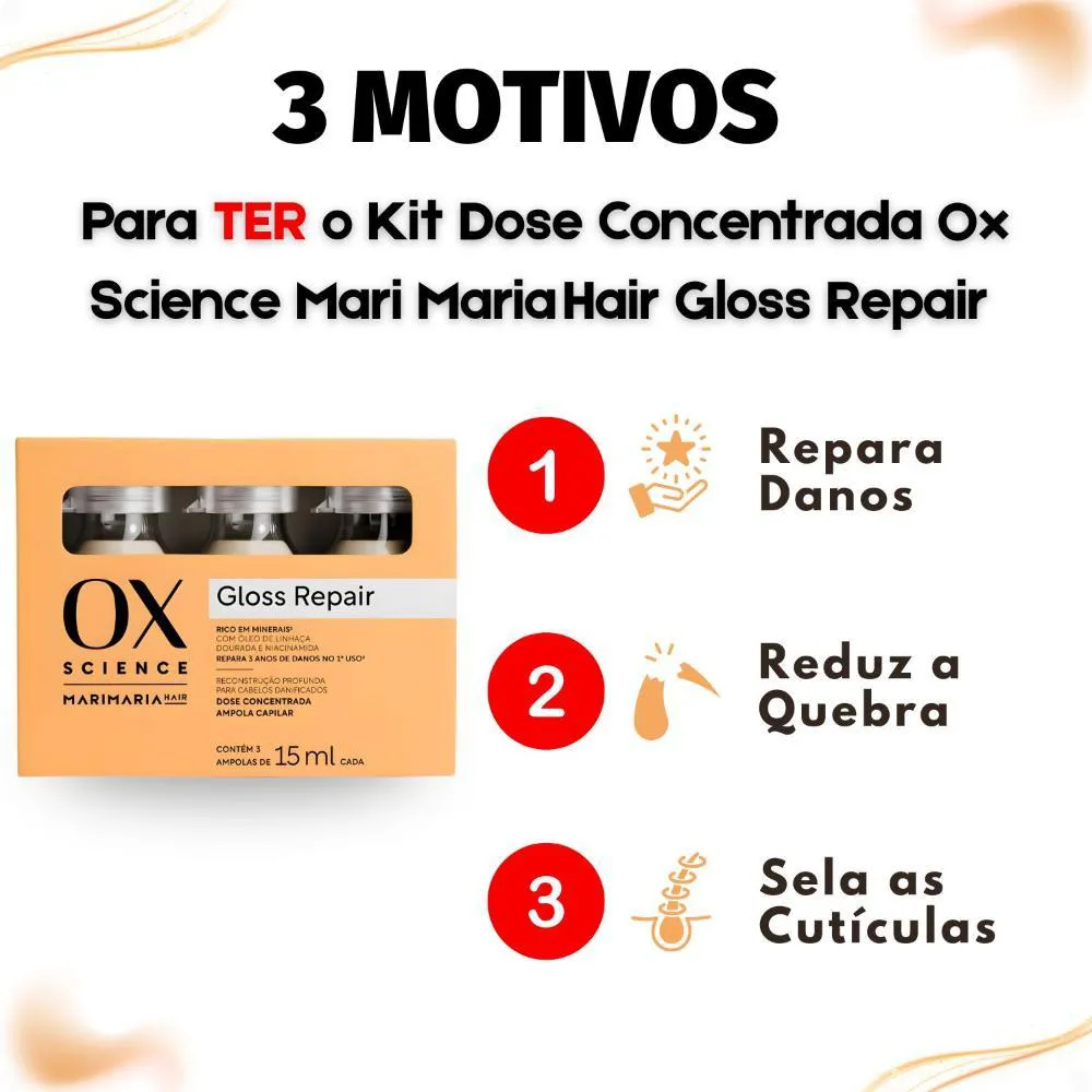 Kit Dose Concentrada Ox Science Mari Maria Hair Gloss Repair 15ml Com 3