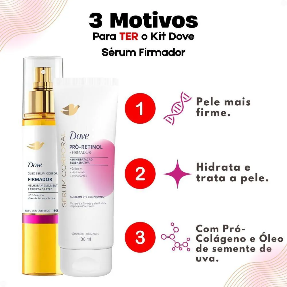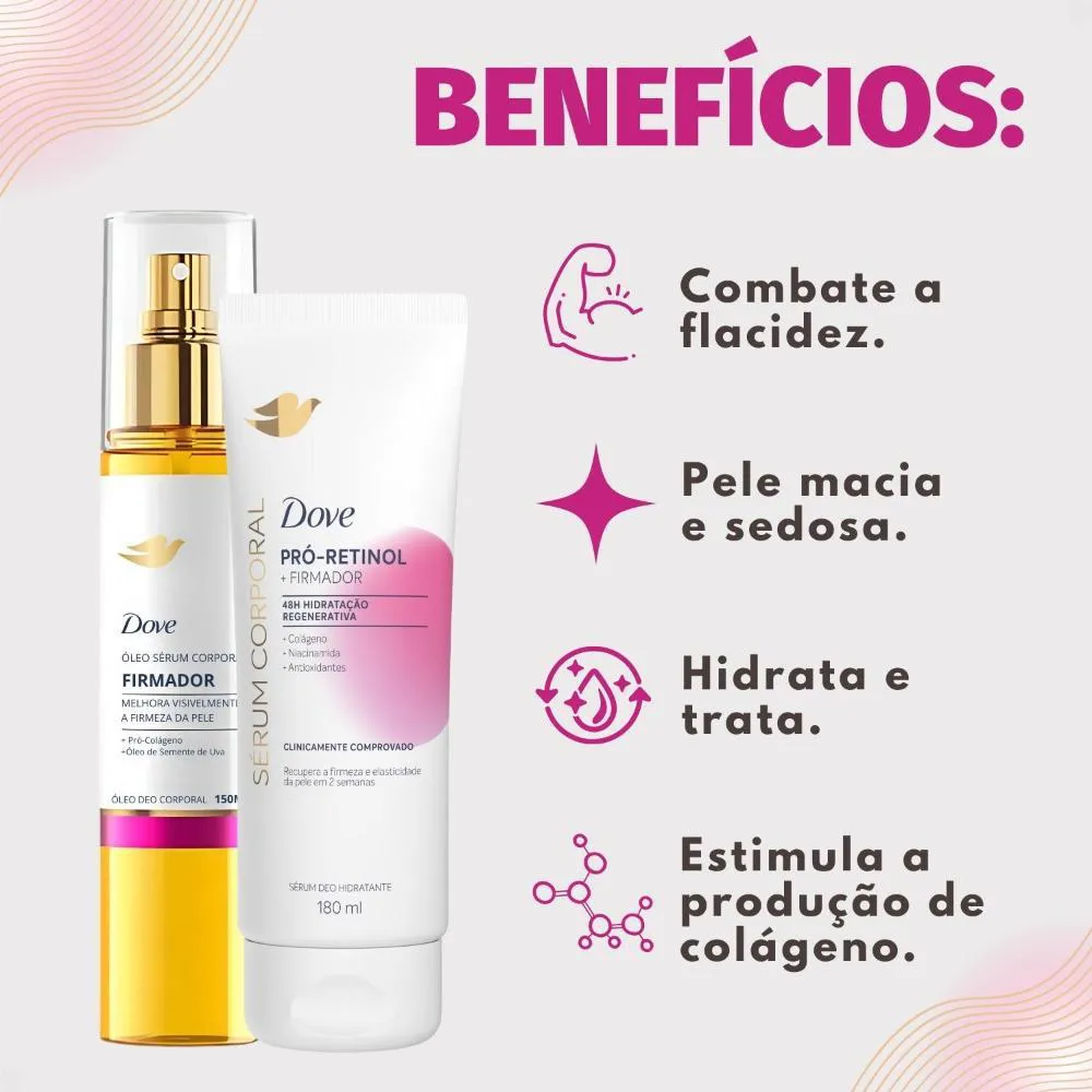 Kit Dove Firmador Colágeno: Óleo Sérum Deo Corporal 150Ml e Sérum Deo Hidratante 180Ml
