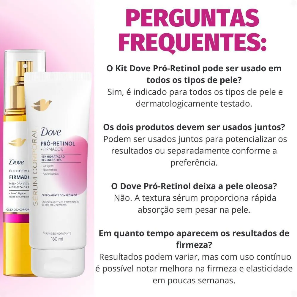 Kit Dove Firmador Pró-Retinol: Óleo Sérum Deo Corporal 150ml e Sérum Deo Hidratante 180ml
