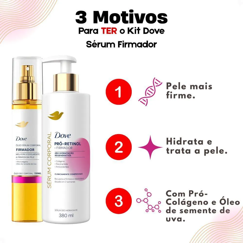 Kit Dove Firmador Pró-Retinol: Óleo Sérum Deo Corporal 150ml e Sérum Deo Hidratante 380ml
