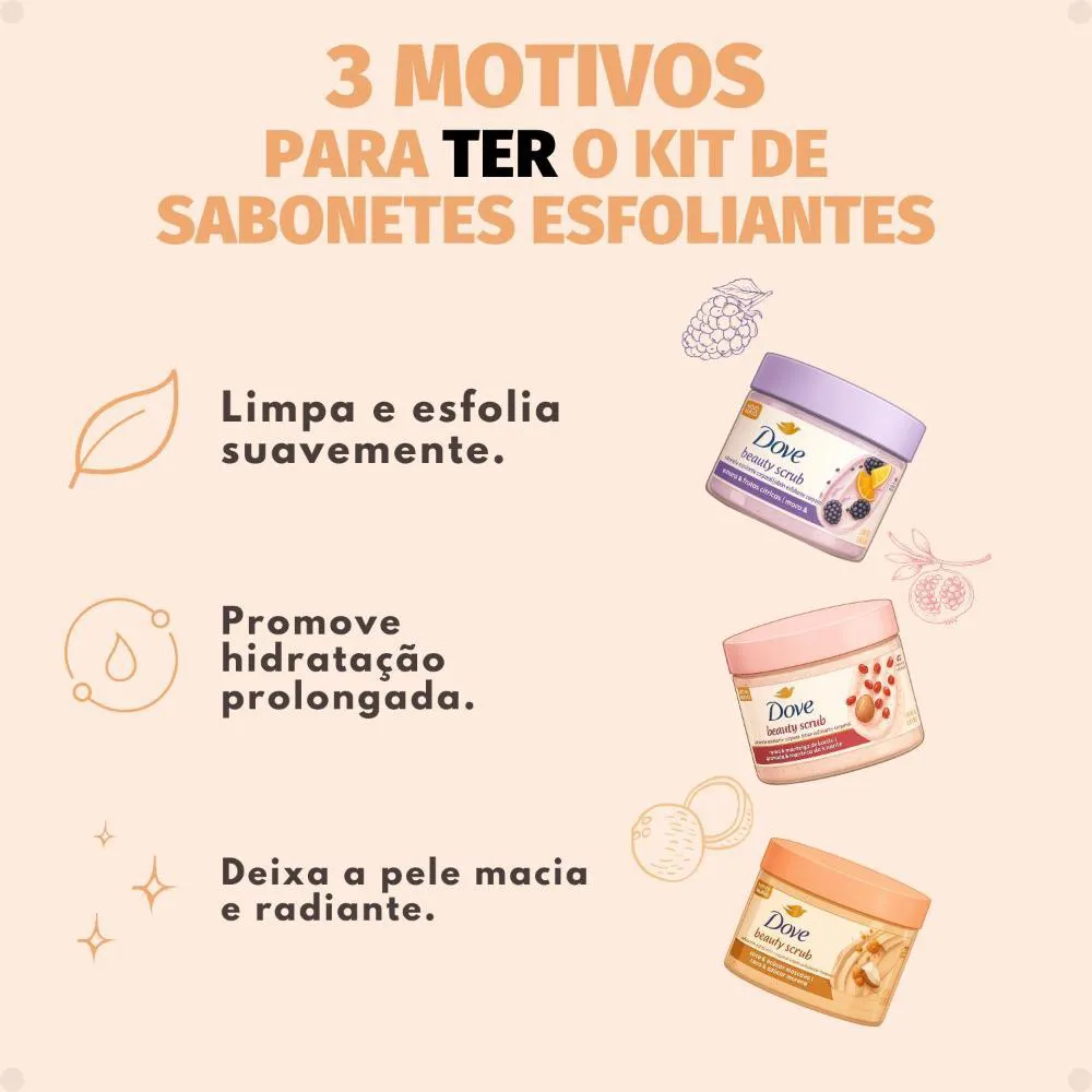 Kit Dove Sabonete Esfoliante Corporal Beauty Scrub: Renovação e Hidratação para uma Pele Radiante