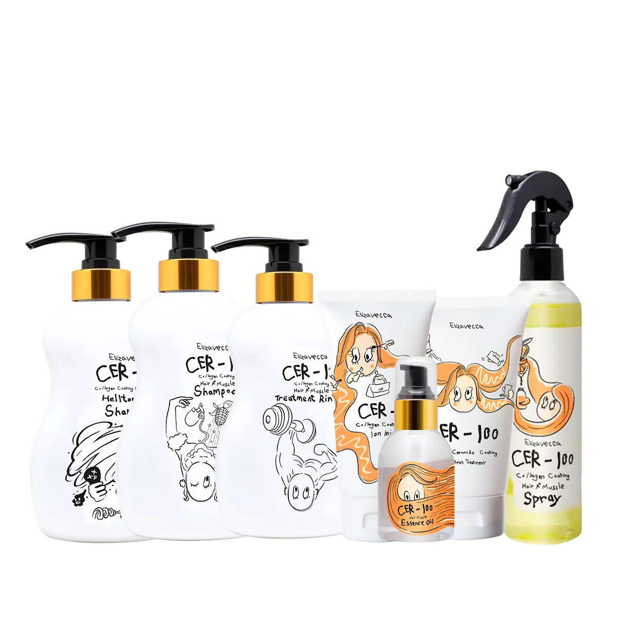 Kit Elizavecca Cer-100 Collagen Coating Hair A+ Muscle Condicionador 500ml + Máscara Protein Ion 500ml + Óleo Capilar Reparador Essence Oil 100ml + Shampoo Coating 500ml + Shampoo Tornado 500ml + Máscara Collagen Ceramide Protein 100ml + Leave-In 250ml