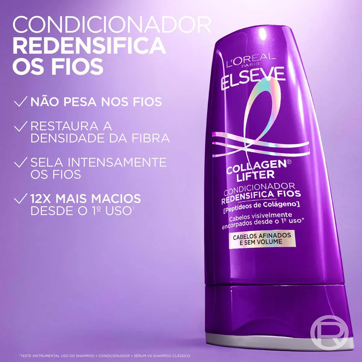 - Aplique o Condicionador Redensifica Fios Elseve Colágeno Lifter em todo o comprimento do cabelo, evitando a raiz. Deixe o condicionador agir por alguns instantes e enxágue abundantemente.