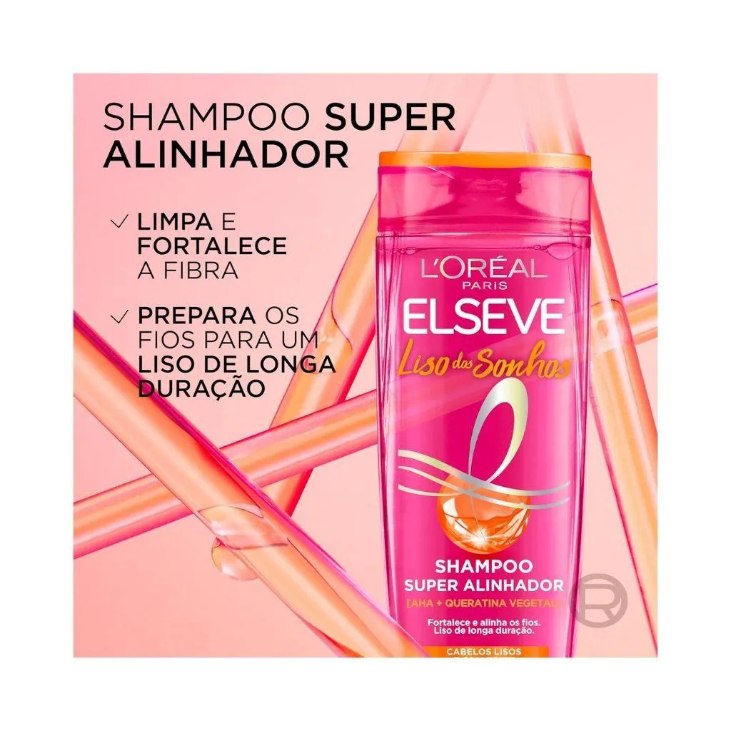 Kit Elseve Liso dos Sonhos – shampoo 400ml + condicionador 400ml Descrição Conquiste cabelos lisos, alinhados e sem frizz com o Kit Elseve Liso dos Sonhos, que traz 1 unidade do Shampoo Super Alinhador 400ml e 1 unidade do Condicionador Desmaia Fios 400ml. Ideal para quem deseja um liso com movimento natural e fios visivelmente mais saudáveis desde a primeira aplicação. Sua fórmula com queratina vegetal e manteiga de cacau limpa suavemente, hidrata profundamente e proporciona alinhamento dos fios, controlando o frizz e deixando o cabelo com brilho e toque sedoso. Benefícios:
