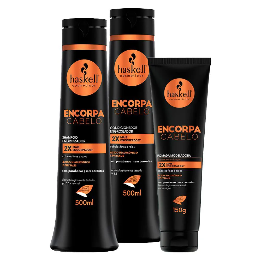 Linha Encorpa cabelo Haskell Principal função: Redensificação e aumento de espessura dos fios. Indicação: Para cabelos finos e ralos