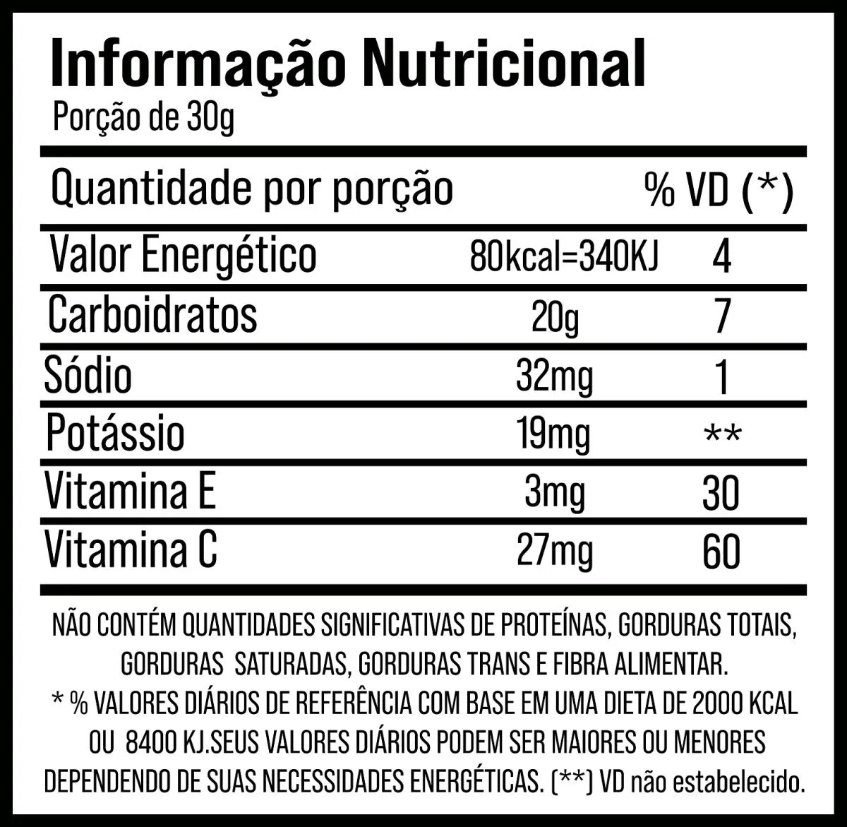 Ingredientes:Maltodextrina, água purificada, frutose, isomaltulose (palatinose™) , citrato de sódio, aroma idêntico ao natural , fosfato monopotássico, cloreto de sódio, ácido ascórbico, sorbato de potássio, sucralose, benzoato de sódio e vitamina E.