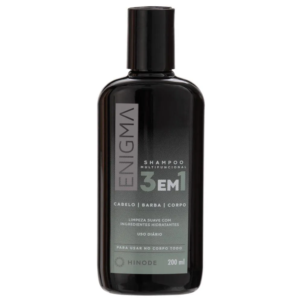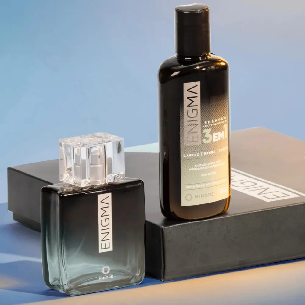 Enigma shampoo cabelo, Barba e corpo (200ml): Para uma rotina de cuidados completa e prática, este shampoo multiuso prolonga a experiência olfativa de Enigma, garantindo limpeza e frescor para cabelo, barba e corpo, mantendo a aura de mistério e sofisticação.