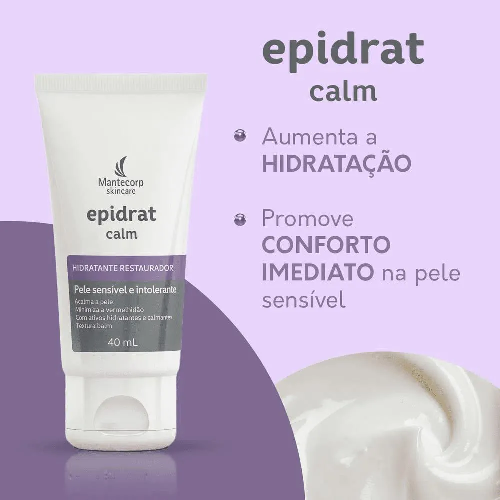 Epidrat Calm ppromove conforto imediato para sensibilidade da pele causada por procedimentos dermatológicos, alterações climáticas, ou pele irritada após depilações, remoção da barba. O uso contínuo aumenta a resistência da pele a agentes externos.