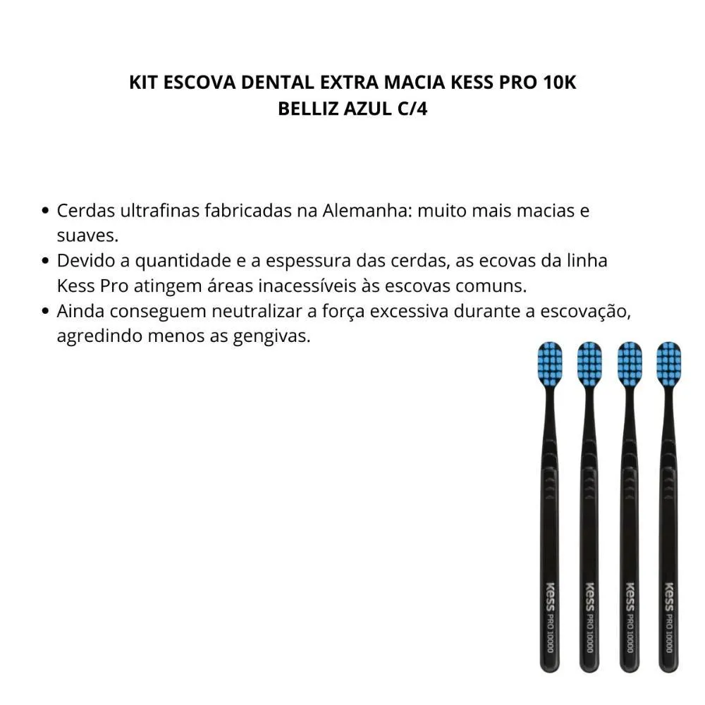 Kit Escova Dental Extra Macia Kess Pro 10K Belliz Azul C/4