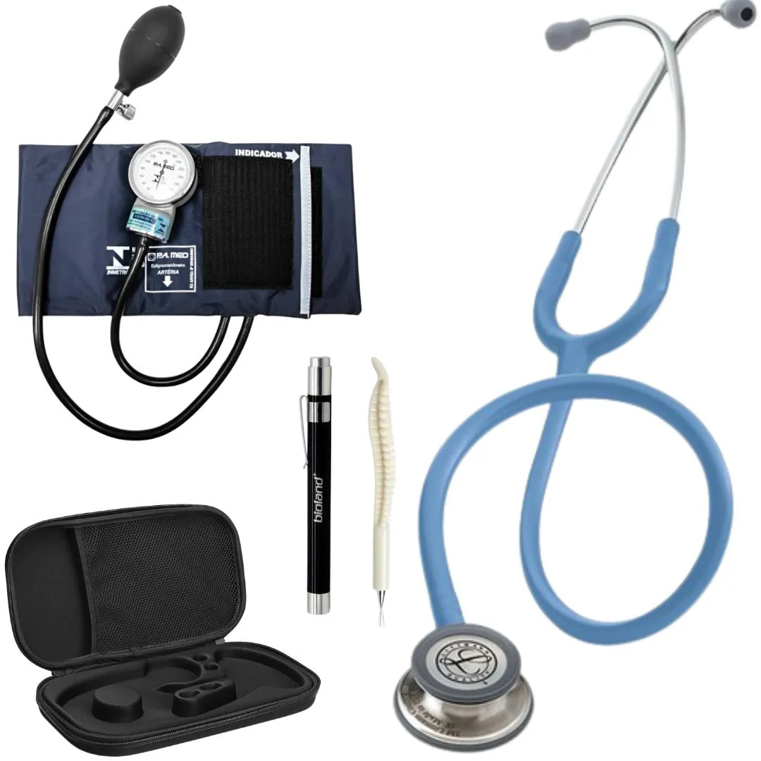 Kit Estetoscópio Littmann Classic Iii + Esfigmomanômetro + Case + Lanterna Clínica + Caneta de Osso