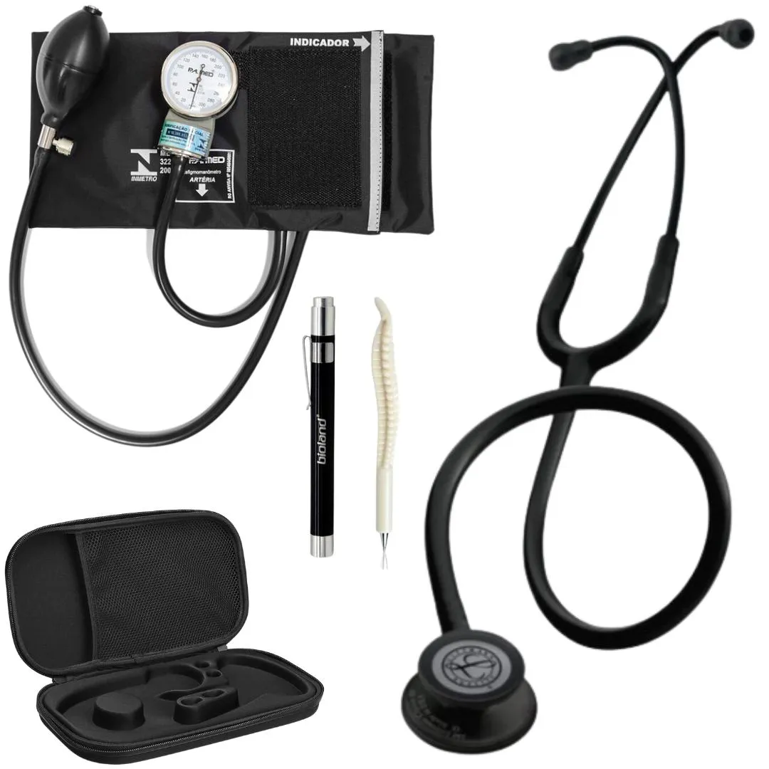 Kit Estetoscópio Littmann Classic Iii + Esfigmomanômetro + Case + Lanterna Clínica + Caneta de Osso 5803 Black Edition