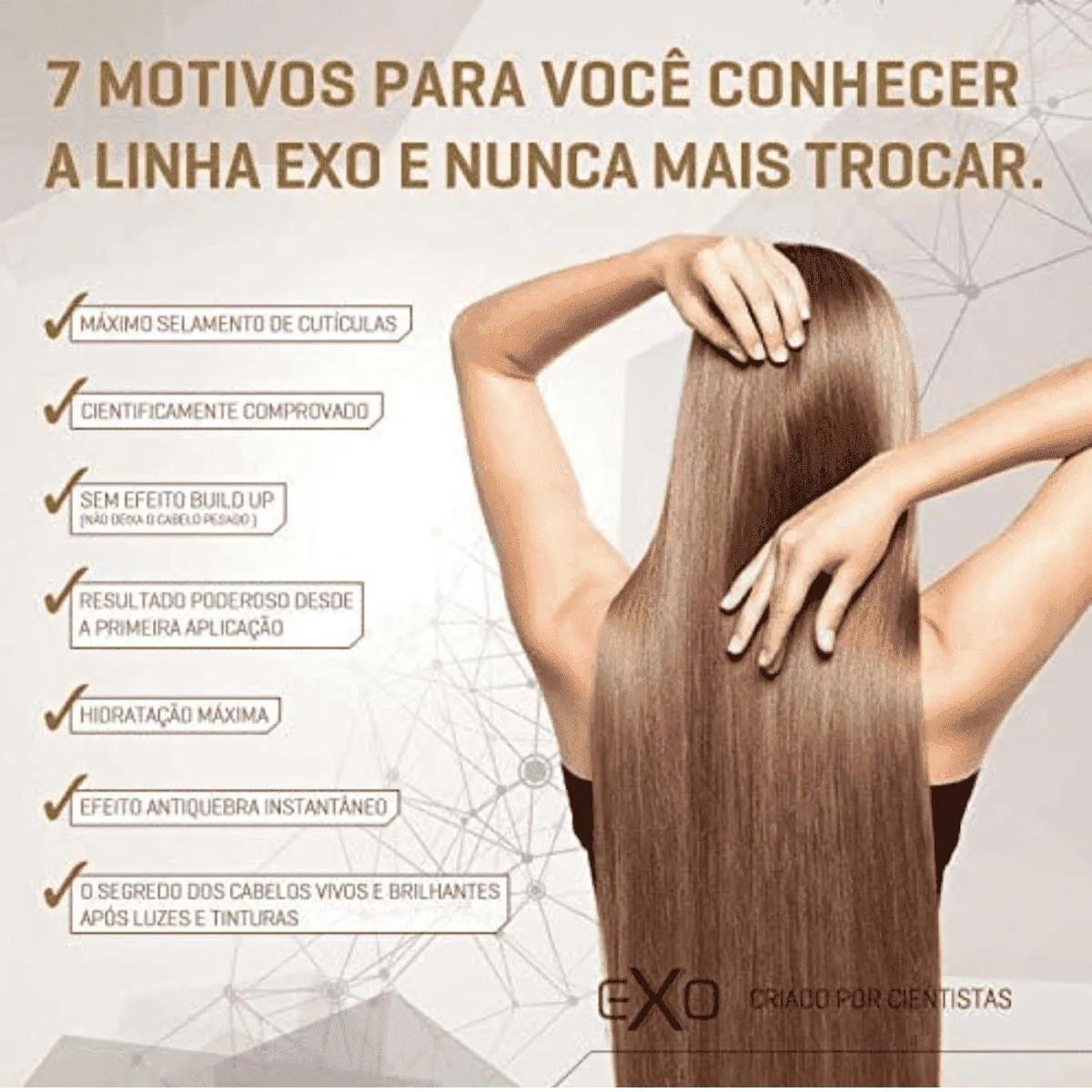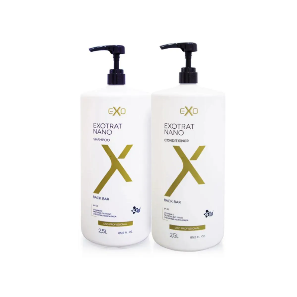 O kit é composto por um shampoo e um condicionador da linha Exotrat Nano, desenvolvidos para oferecer cuidados diários completos para todos os tipos de cabelos, mantendo os ativos da Exoplastia por mais tempo.