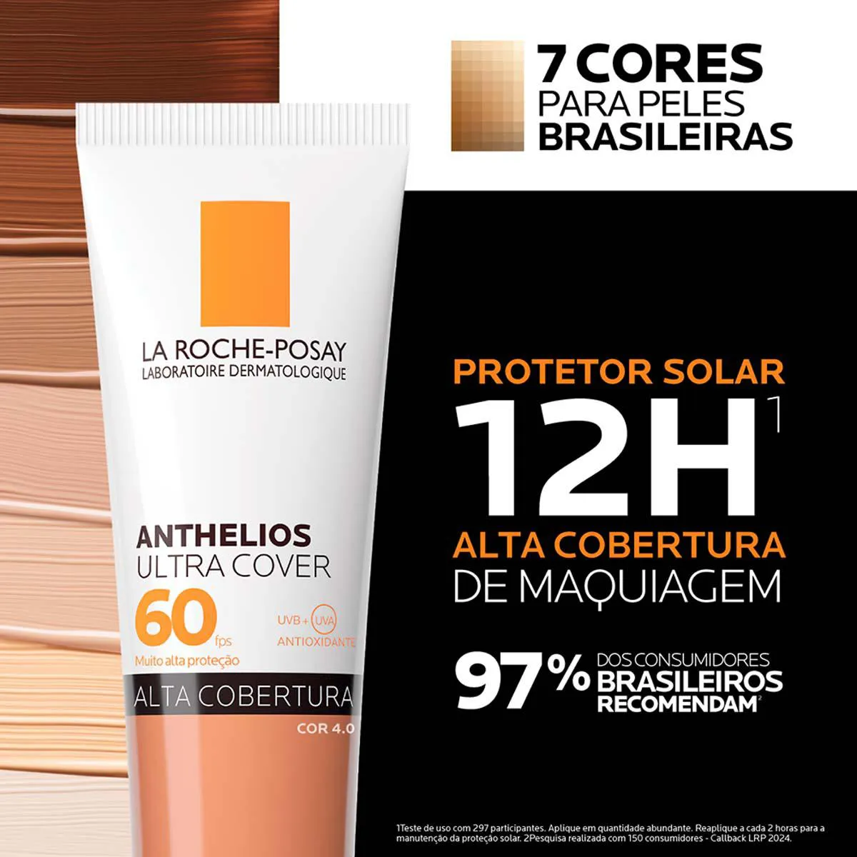 - Anthelios Ultra Cover protege contra radiação UVB, UVA, UVA longo e luz visível, oferecendo alta cobertura em uma única aplicação.