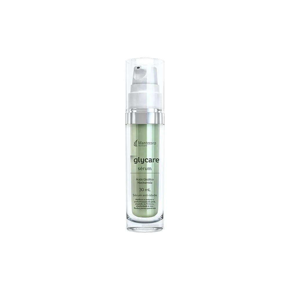 Sérum Facial anti-idade Ácido Glicólico Mantecorp Glycare contém múltiplos benefícios que contém em sua formulação o Ácido Glicólico nanoencapsulado, a Niacinamida e o Alfa-arbutin que associados promovem renovação celular, redução dos sinais de envelhecimento como rugas e linhas de expressão, clareamento e uniformização do tom da pele, além disso promove o controle da oleosidade e reduz poros aparentes.* RESULTADO: Fortalece e proporciona uma pele limpa, macia, saudável e equilibrada.* SUGESTÕES DE USO:Espuma: