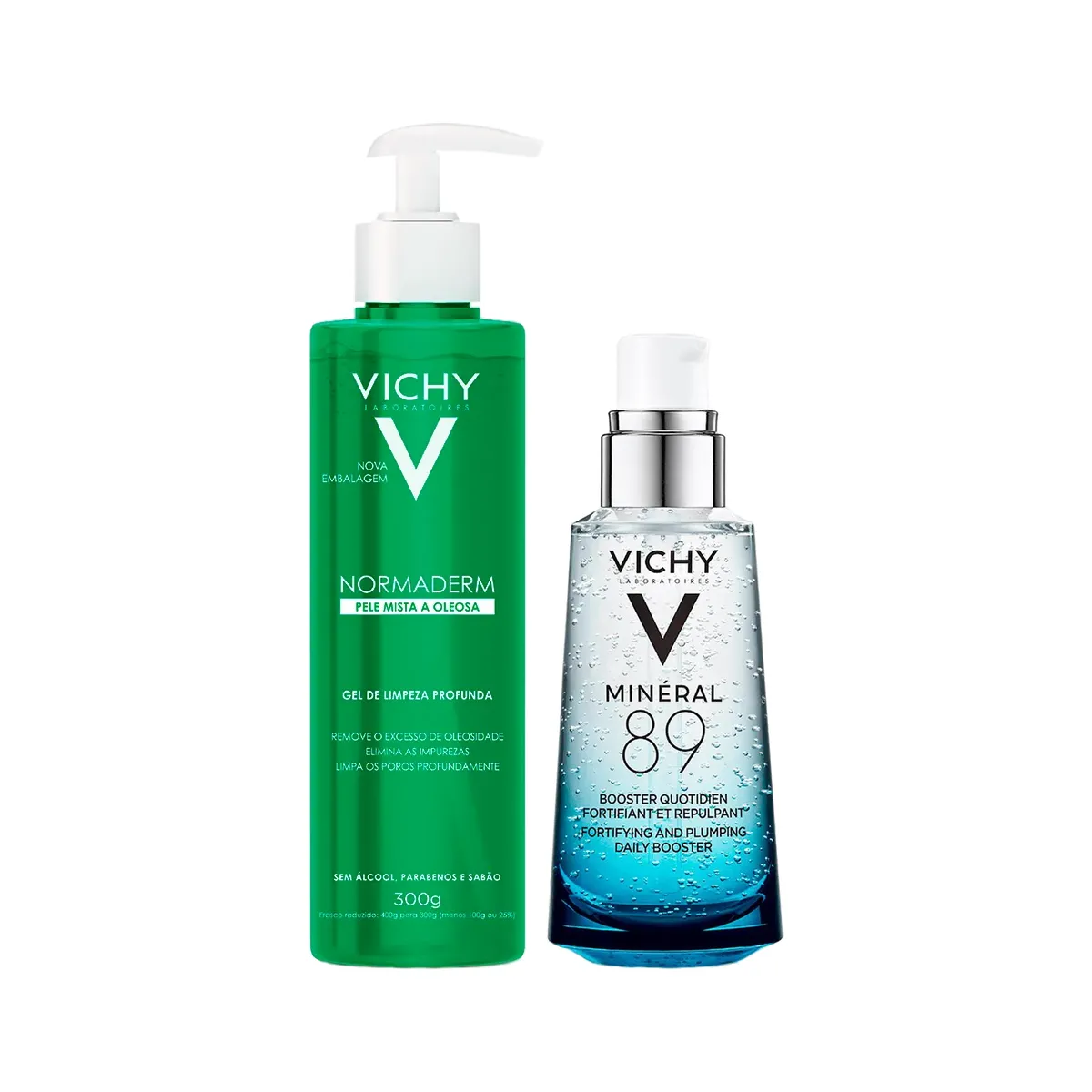 Kit Facial Vichy Gel de Limpeza Profunda Normaderm Pele Mista a Oleosa 300g + Sérum Fortalecedor Hidratante Minéral 89 Daily Booster 50ml