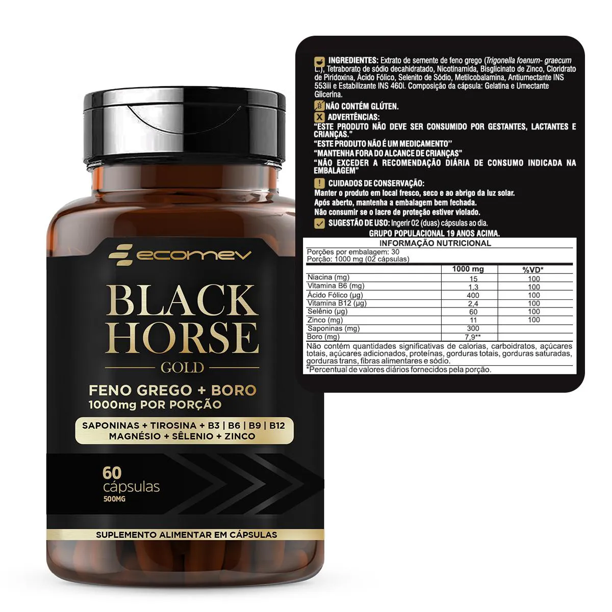 - Ingredientes: Feno Grego, vitamina B3, Vitamina B6, Vitamina B9, Vitamina B12, Selenio, Zinco, Saponinas, Boro