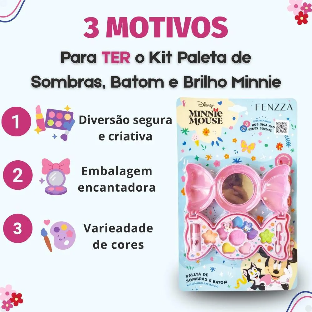 Kit Fenzza Disney Minnie: Paleta de Sombras e Batom Ref. DIS052