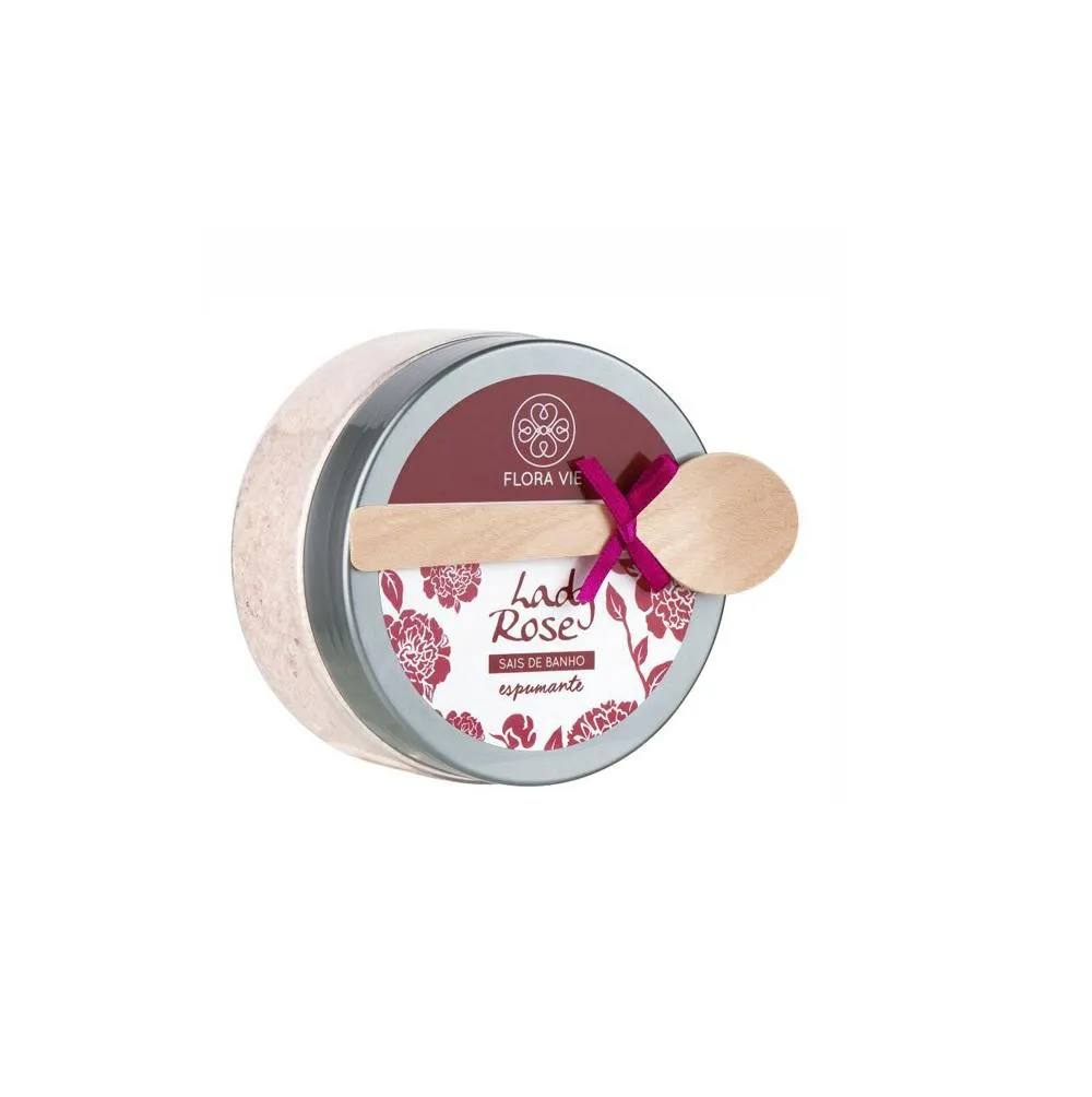 Flora Vie Lady Rose - Sais de Banho 200g: possui em sua fórmula, morango desidratado, que liberam seus princípios ativos em contato com a água, ajudando na hidratação e tratamento da pele.