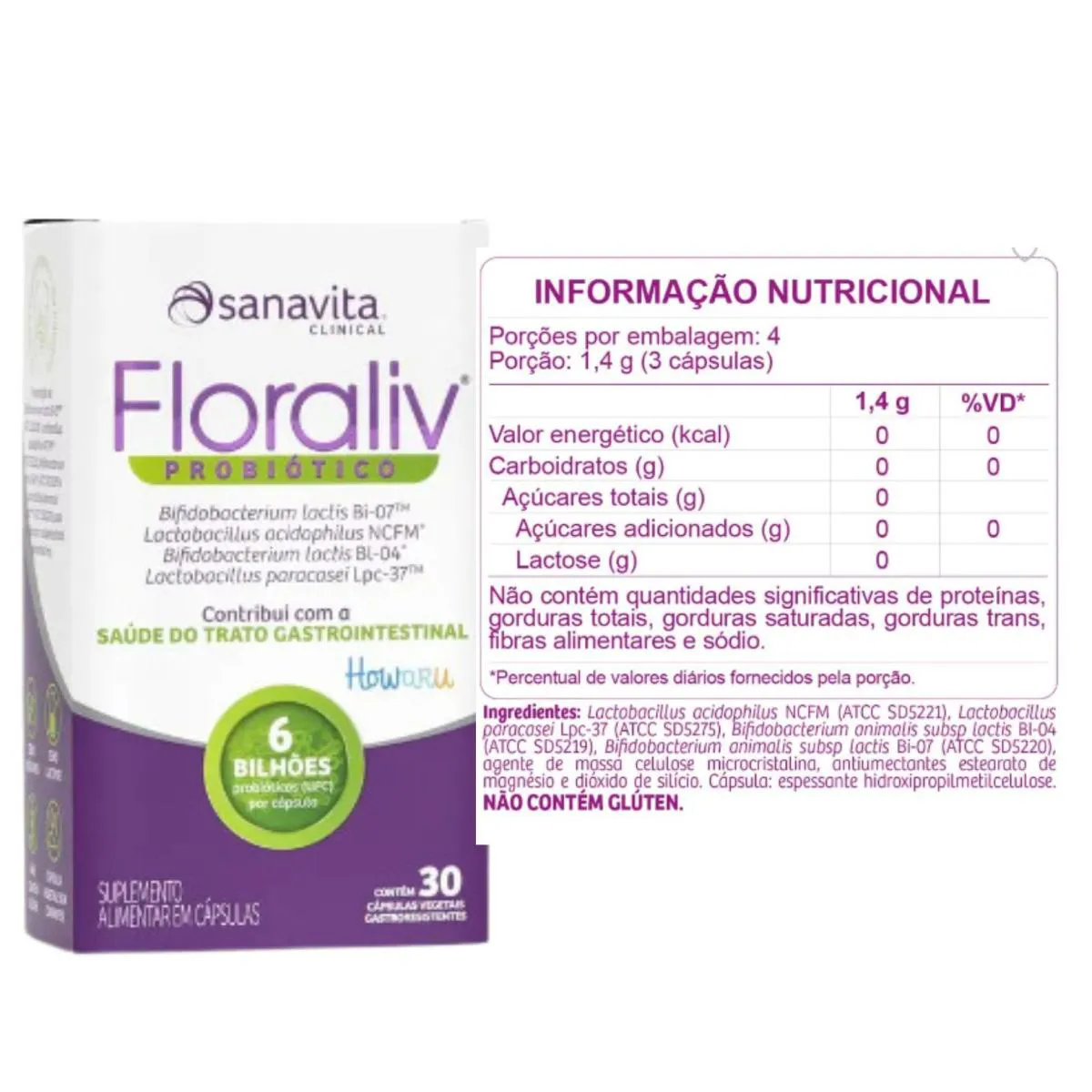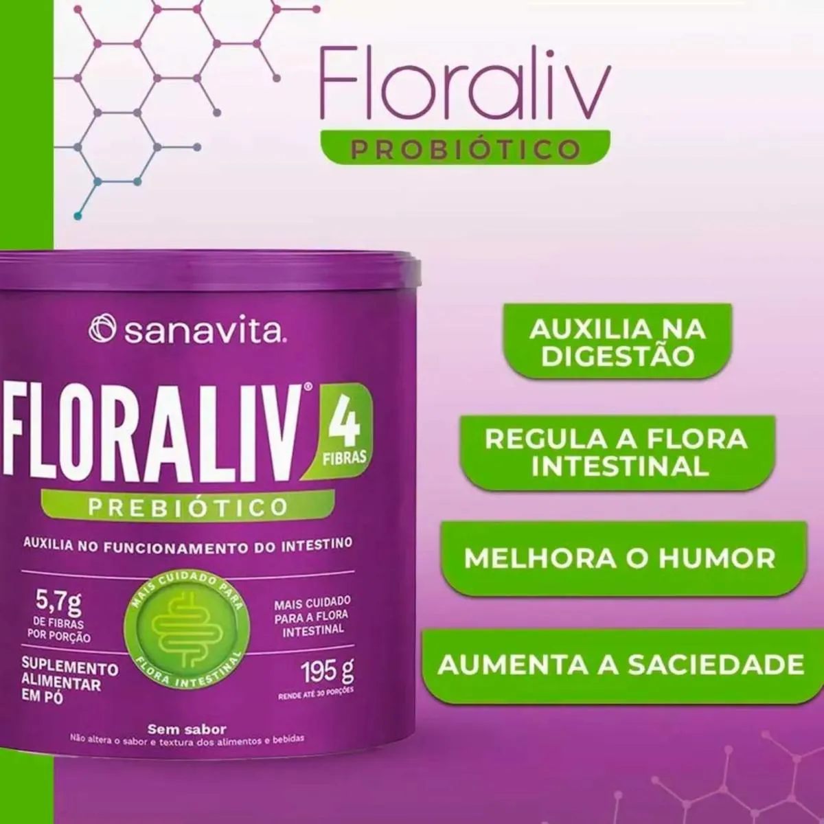 Kit Floraliv 4 Fibras + Floraliv 30 Caps Prebiótico Sanavita