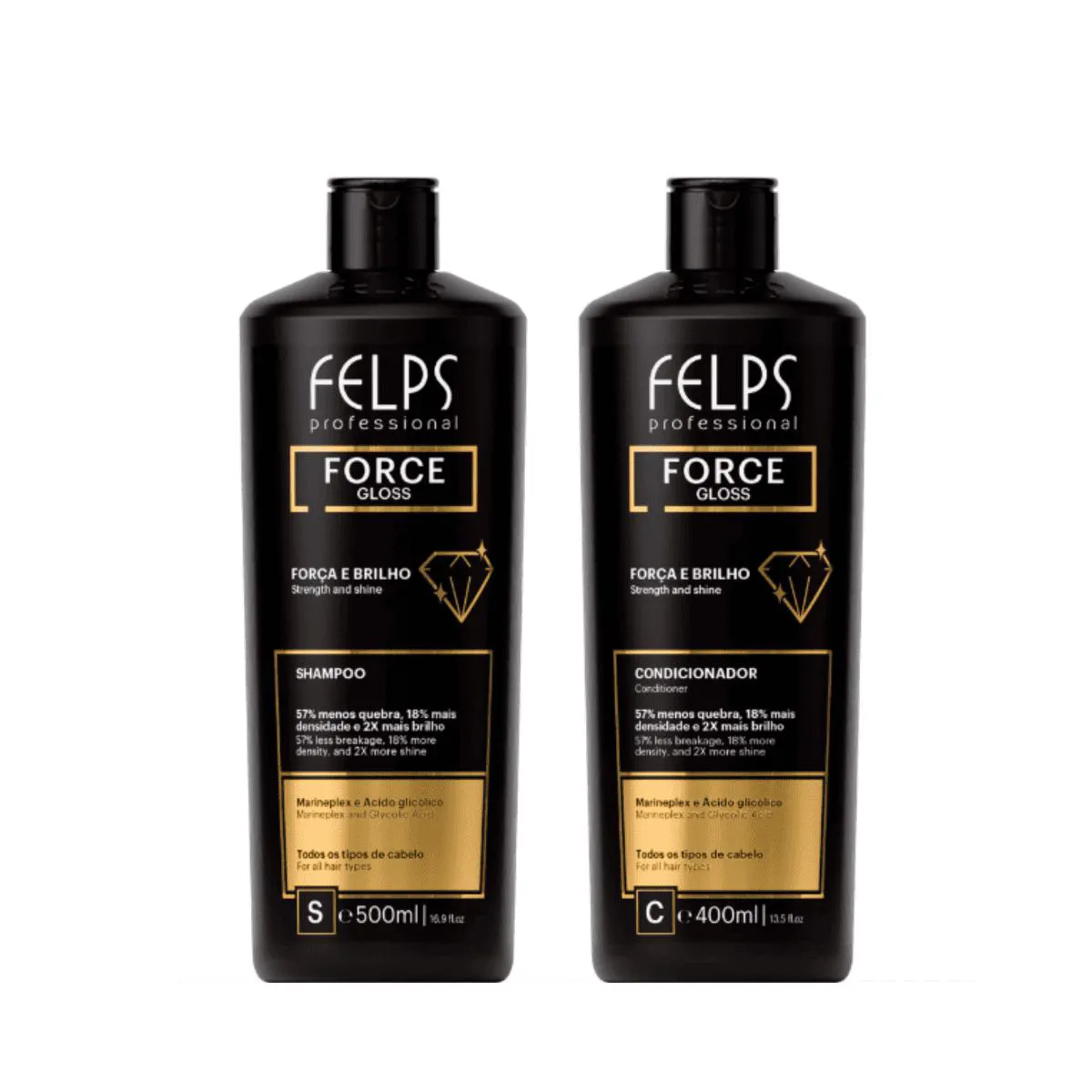 Kit Force Gloss ( Força e Brilho ) Shampoo 500Ml + Condicionador 400Ml - Felps Professional