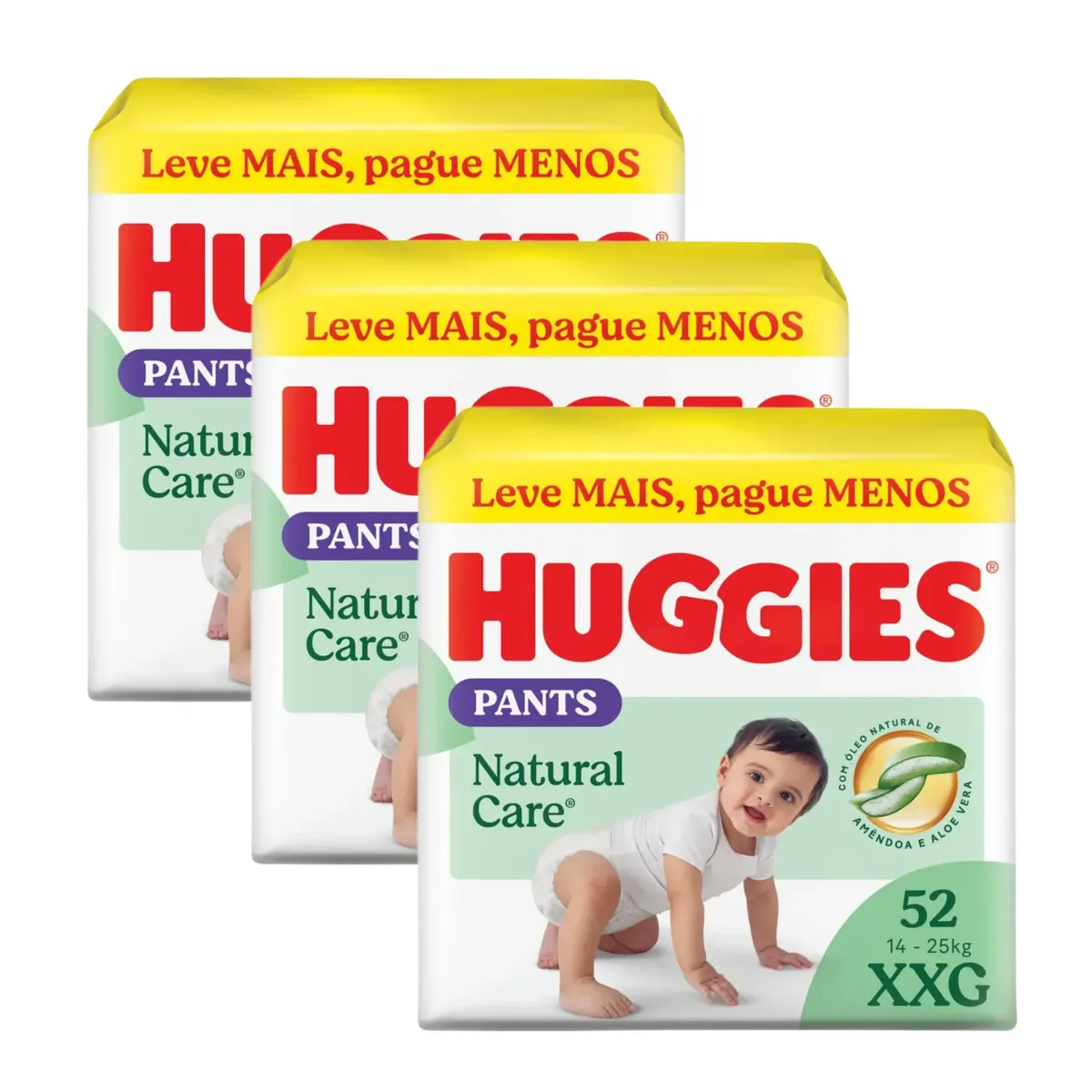 Kit Fralda Calça Huggies Pants Natura Care XXG 52 unidades 3 Pacotes
