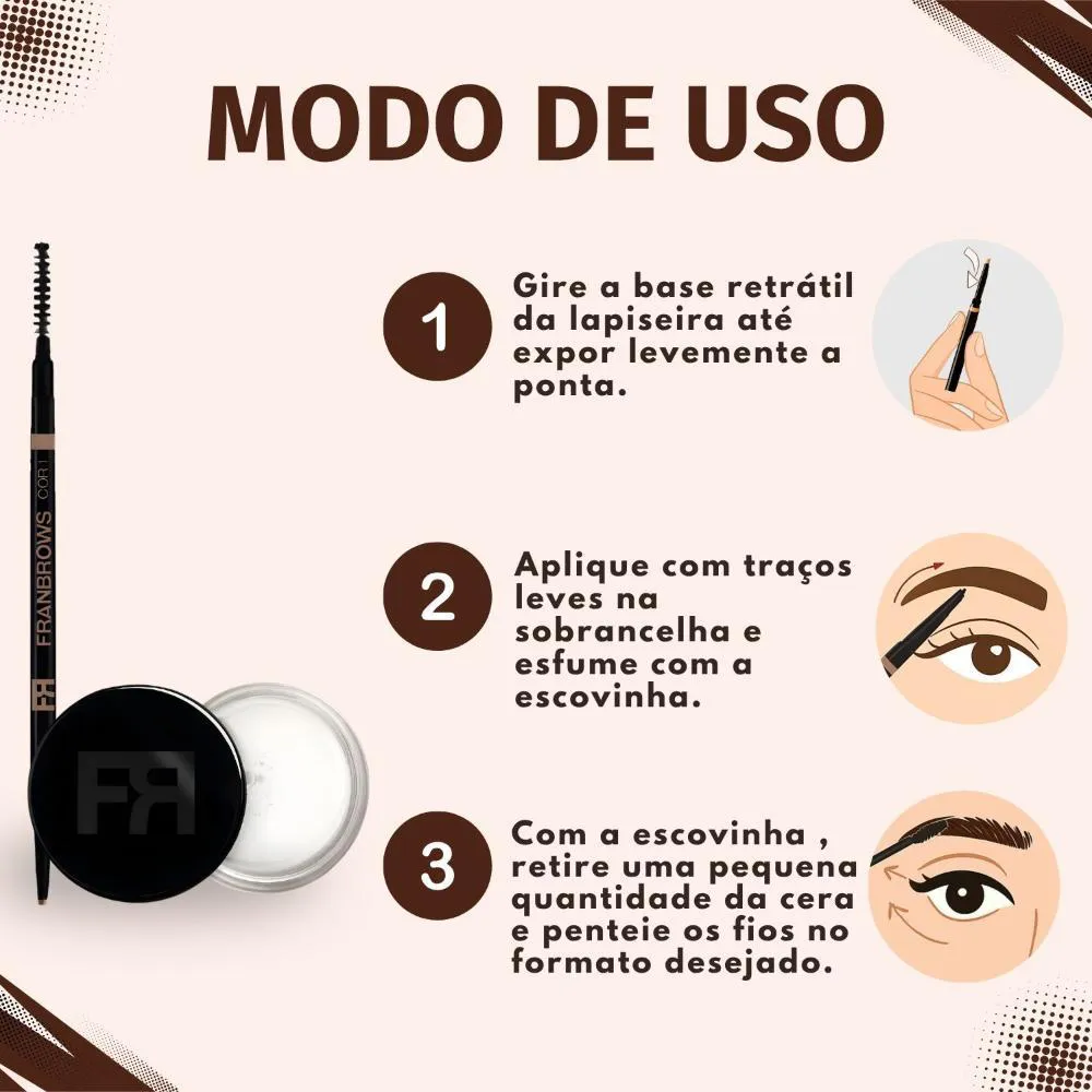 O Kit Franciny Ehlke Fran Brows é perfeito para o uso diário, seja para um look natural e discreto ou para uma maquiagem mais elaborada e sofisticada. Ideal para eventos especiais, como festas, casamentos e formaturas, onde você deseja estar impecável. Também é perfeito para reuniões de trabalho, apresentações e entrevistas, transmitindo confiança e profissionalismo. Use-o para realçar seu olhar em fotos e vídeos, garantindo um visual radiante em todas as suas redes sociais. Sua versatilidade permite que você esteja sempre pronta para qualquer ocasião, realçando sua beleza natural e expressando sua individualidade.Modo de Uso/Aplicação
