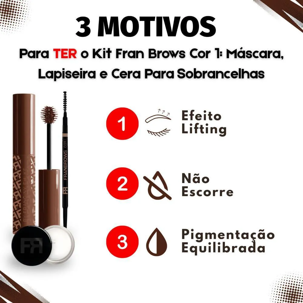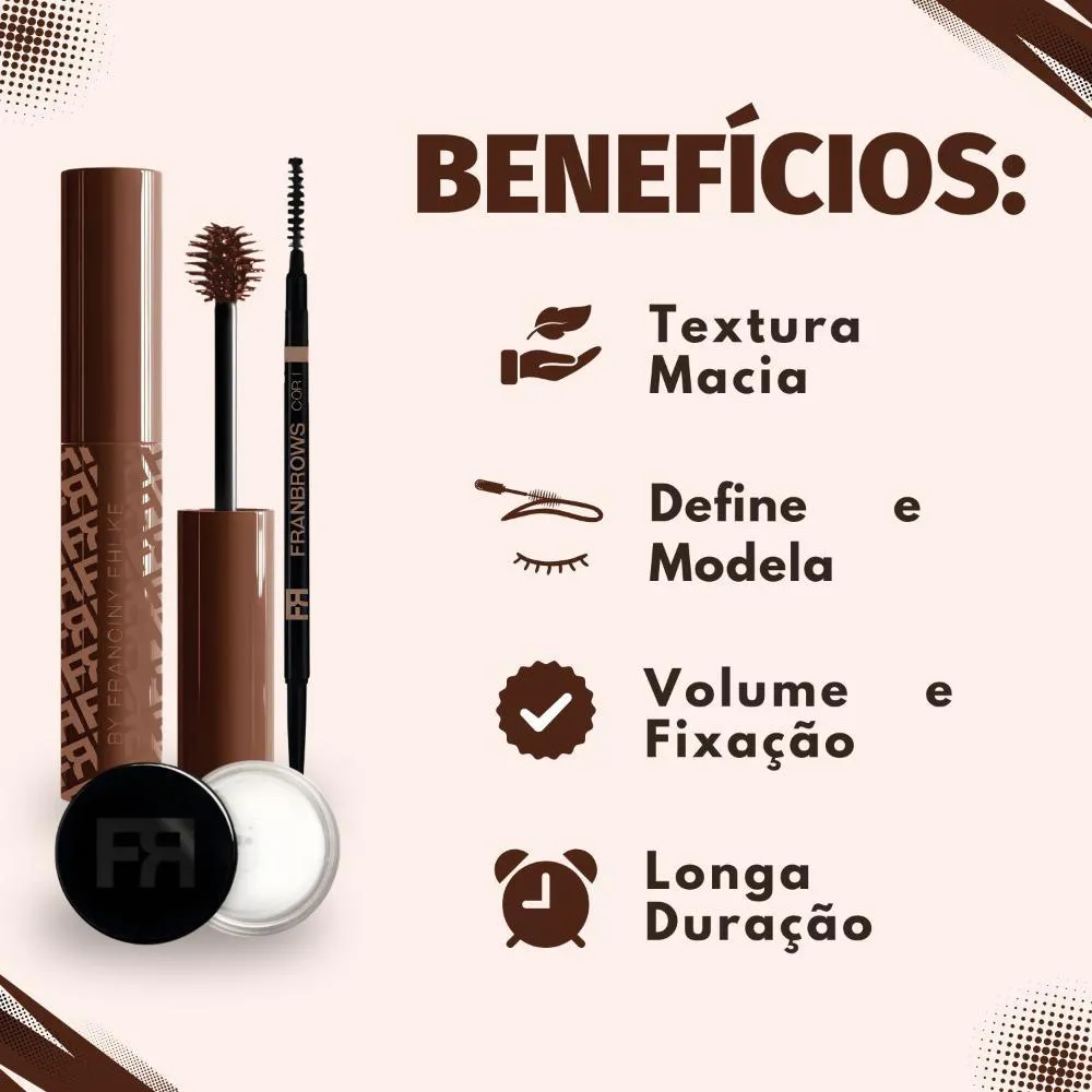 Kit Franciny Elhke Fran Brows Cor 1: Máscara, Lapiseira e Cera para Sobrancelhas
