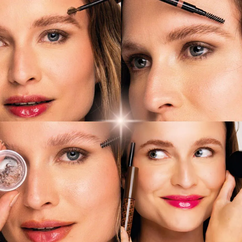 - Define, preenche e fixa sobrancelhas.
