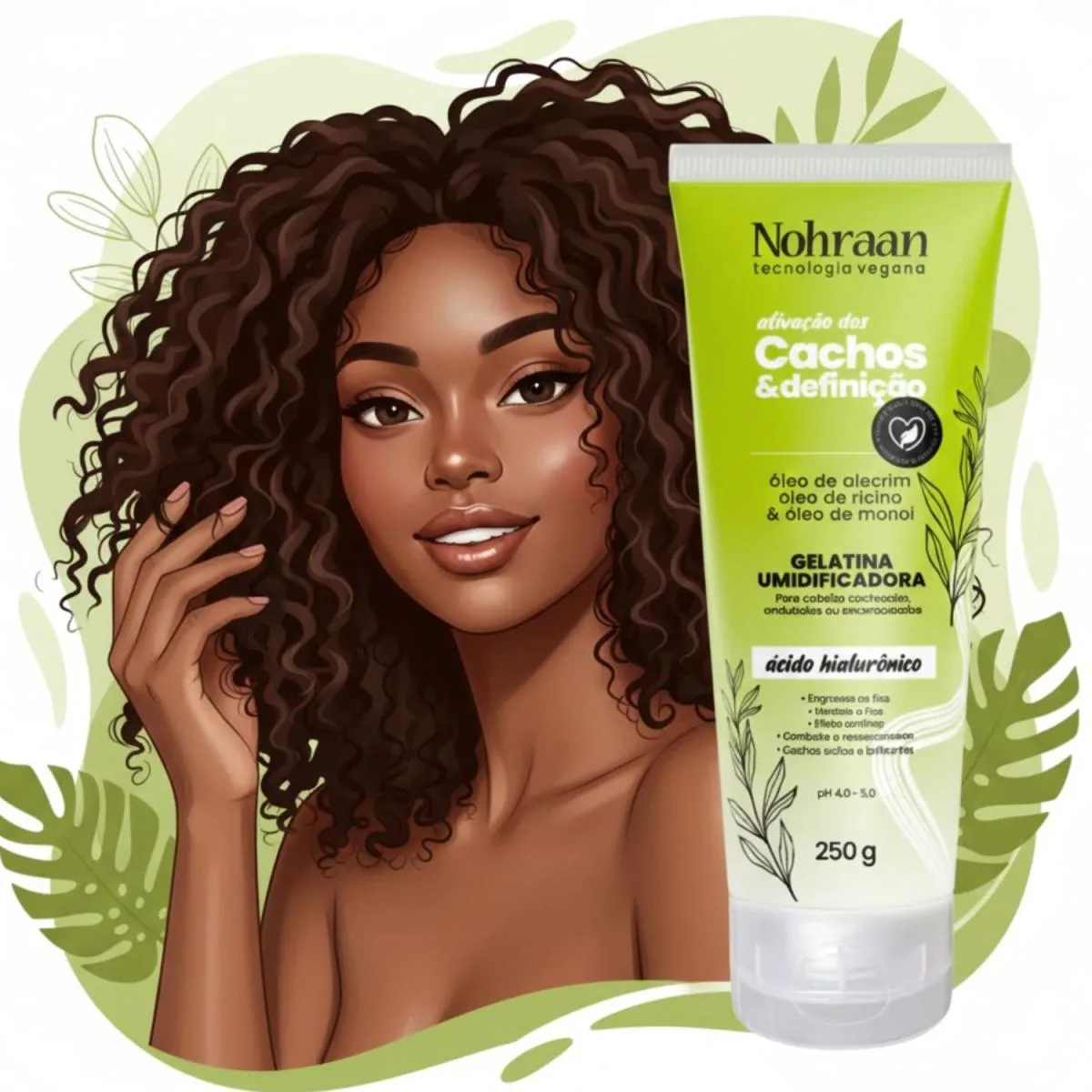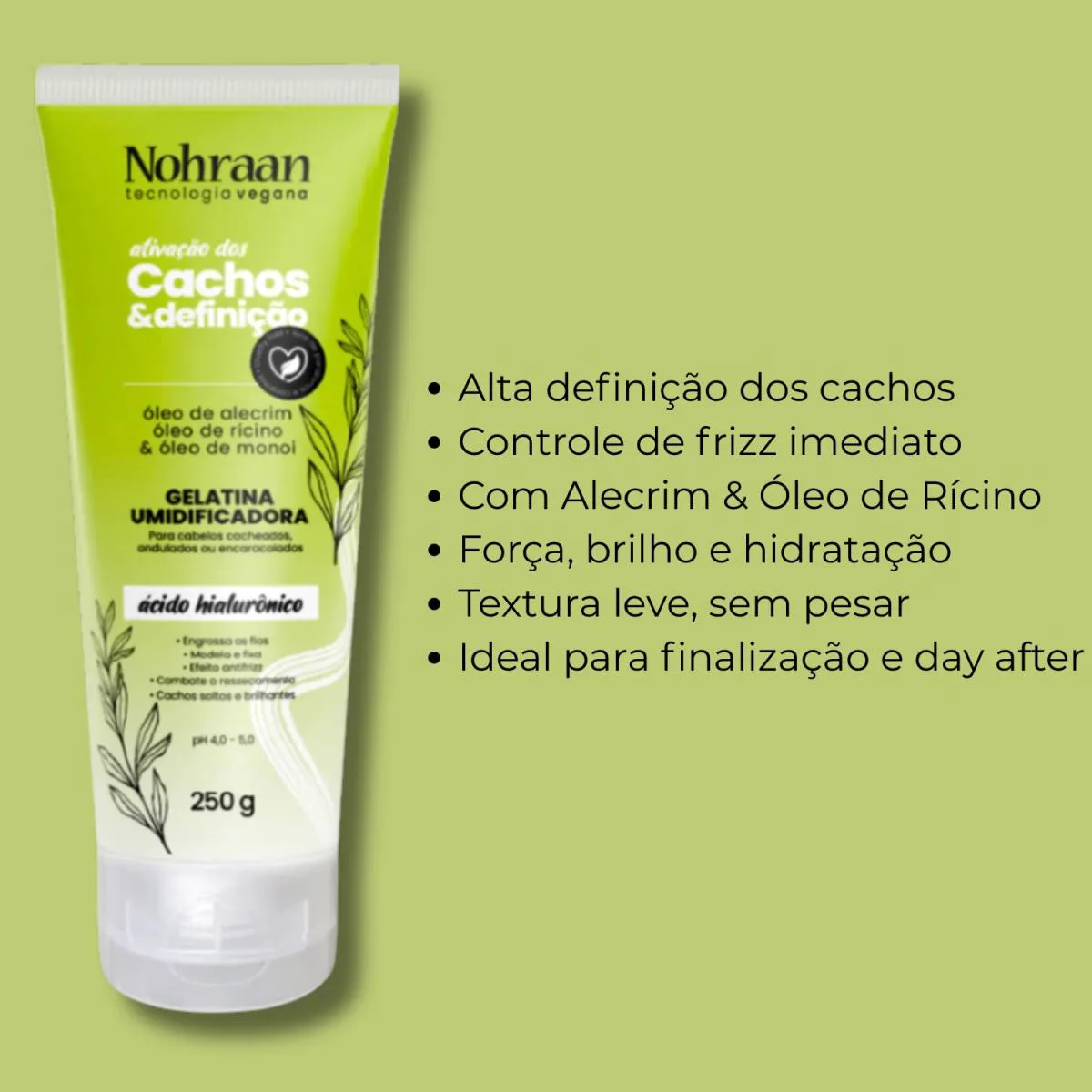 É um produto capilar desenvolvido para definir, modelar e manter os cachos no lugar por muito mais tempo. Fortalece os fios, reduz o frizz e proporciona brilho sem pesar, deixando o cabelo com acabamento natural e hidratado.
