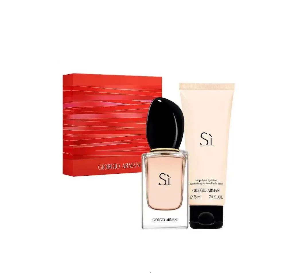 O Conjunto Sì Giorgio Armani possui uma fragrância inicialmente delicada e que após, permanece com mistério para deixar uma impressão duradoura. Incorpora a própria essência do estilo e elegância italiana chique. Acompanha loção corporal com a mesma fragrância do eau de parfum.