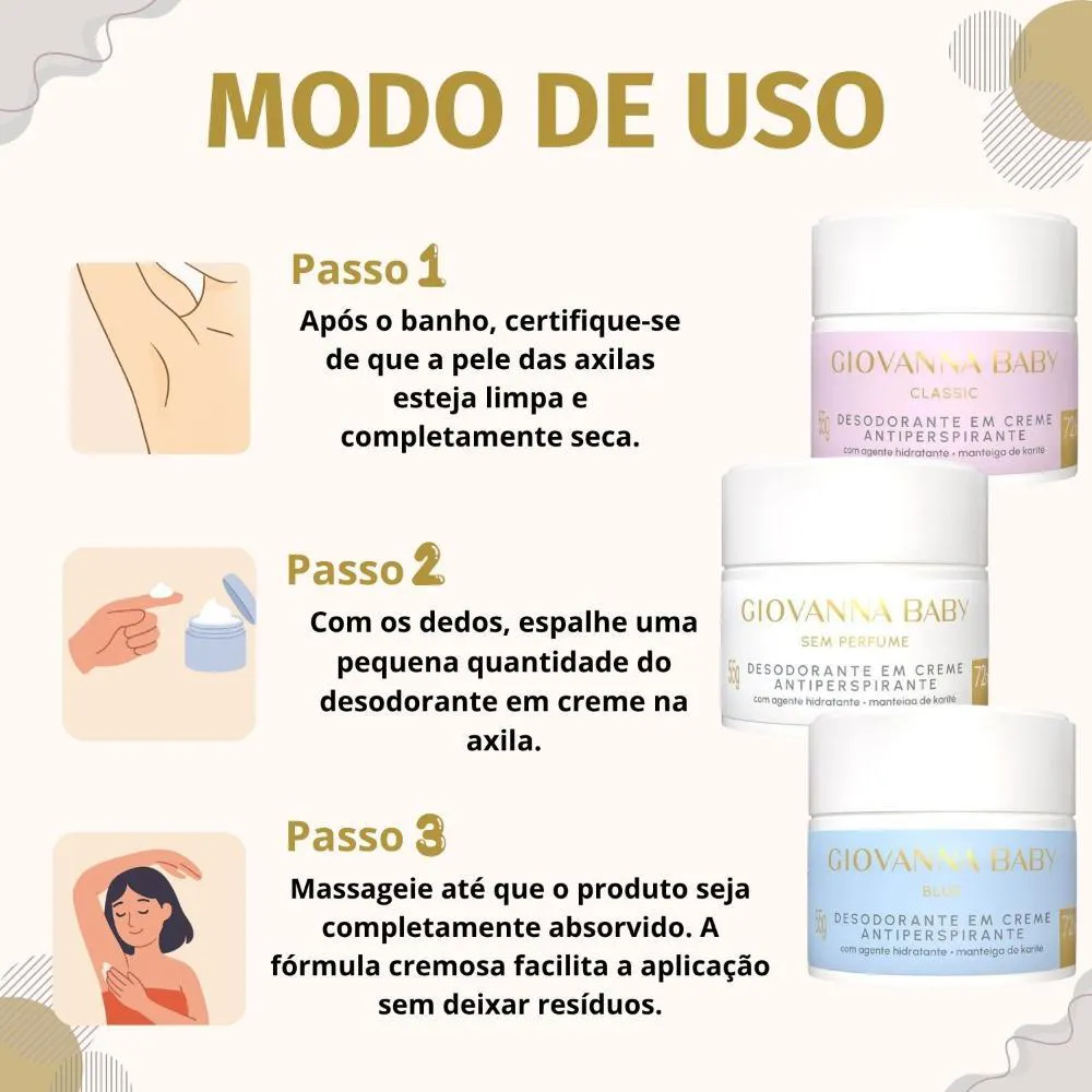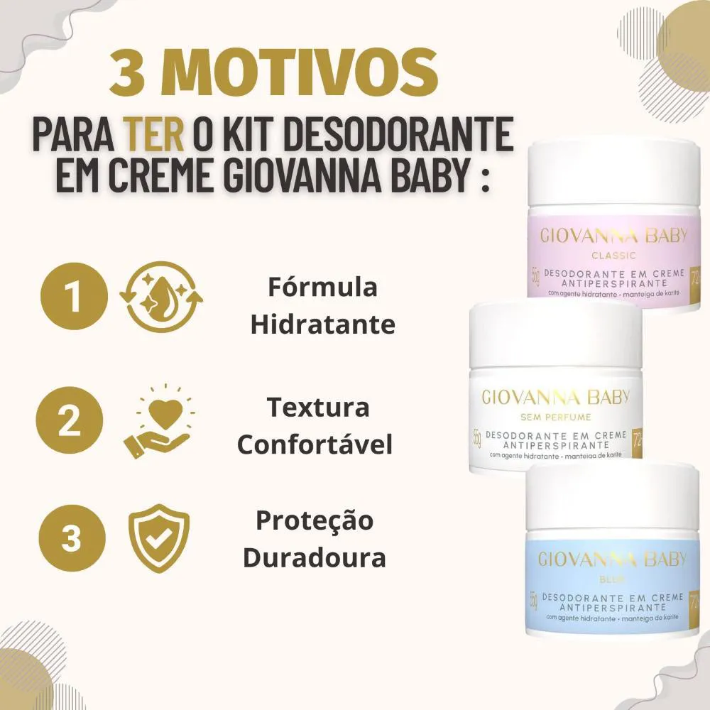 Kit Giovanna Baby: 3 desodorantes em Creme Antiperspirante 55g