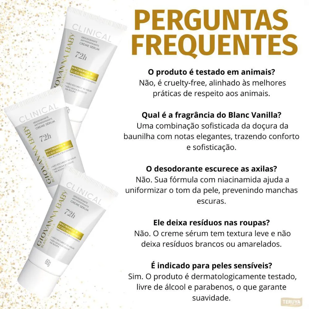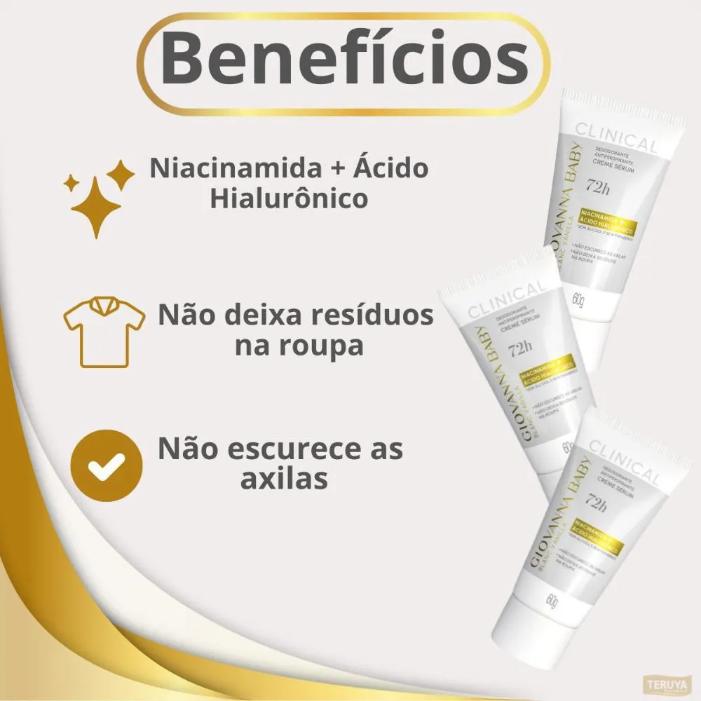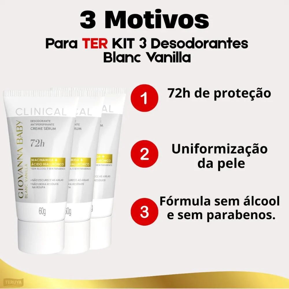 Kit com 3 desodorantes Creme Sérum Giovanna Baby Clinical Blanc Vanilla 60g - Proteção e Sofisticação para Suas Axilas