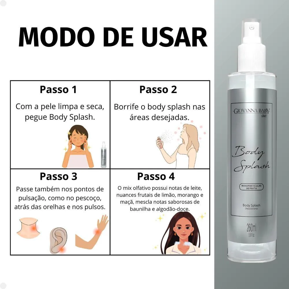 Como usar o Kit Giovanna Baby Silver: 1 Body Splash E 1 Loção Hidratante?