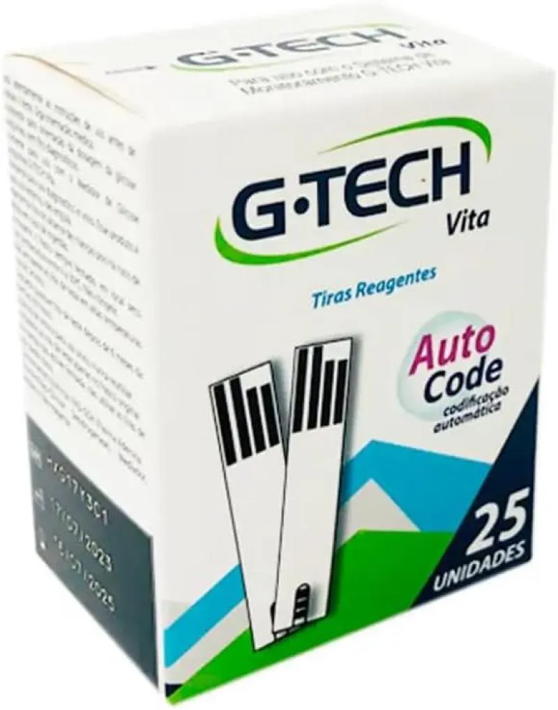 As Tiras Reagentes G-TECH VITA são fornecidas em embalagens com 50 tiras. Proporcionam resultados precisos e seguros, graças à Tecnologia Auto Code, que dispensa codificação prévia, tornando a medição da glicose mais simples e rápida. Com a moderna enzima Glicose Desidrogenase (FAD-GDH), é possível obter resultados em amostras de sangue capilar, arterial, venoso e neonatal. É uma excelente ferramenta para uso residencial e em ambientes hospitalares.
