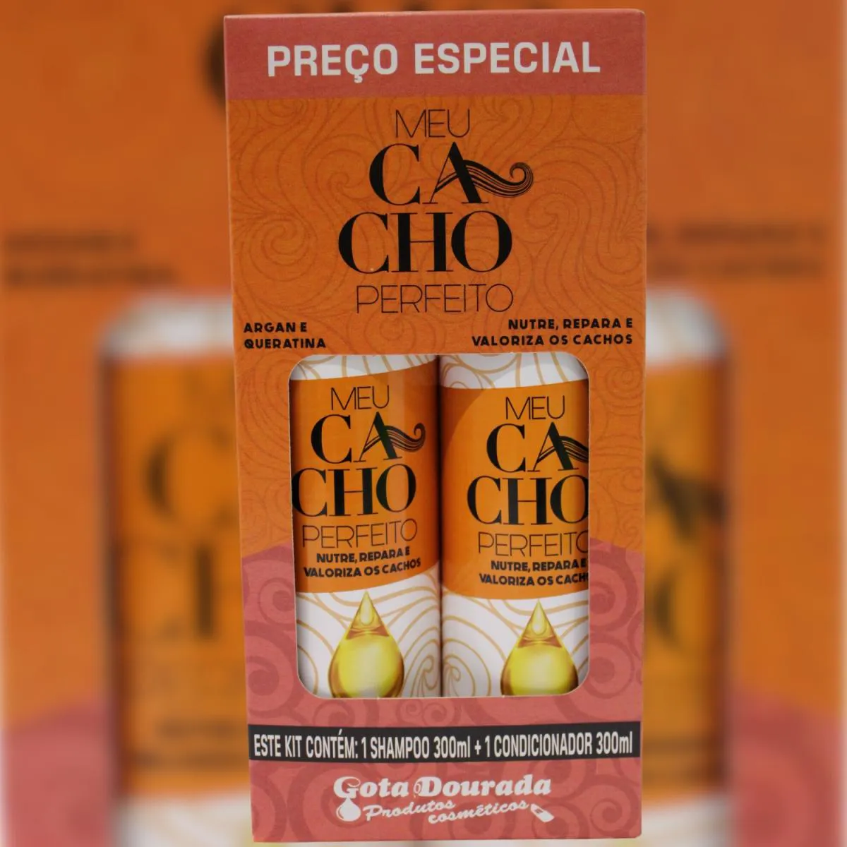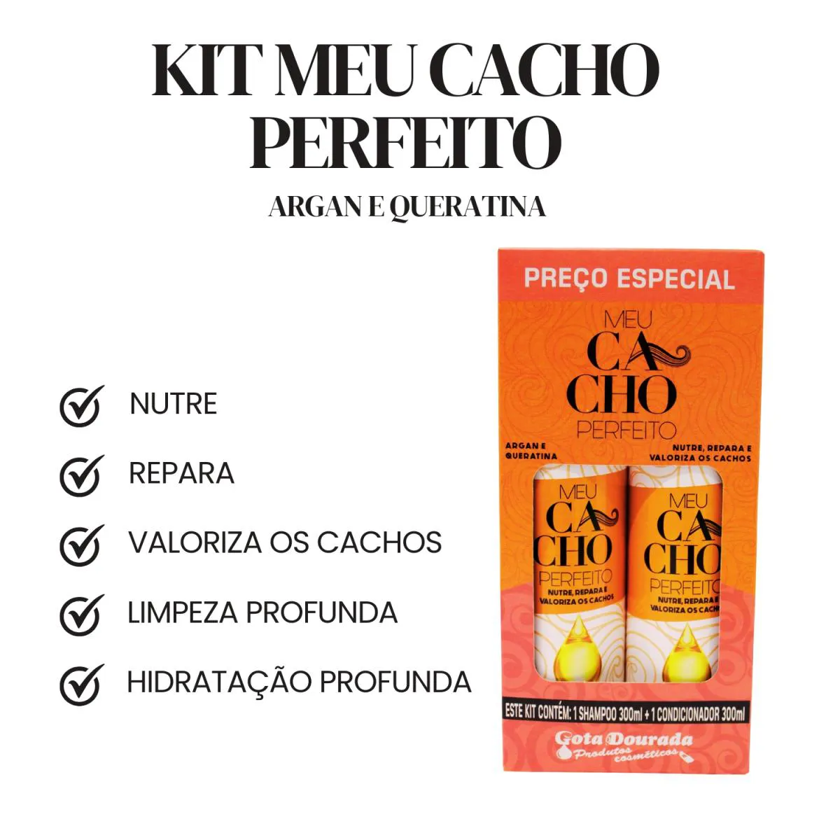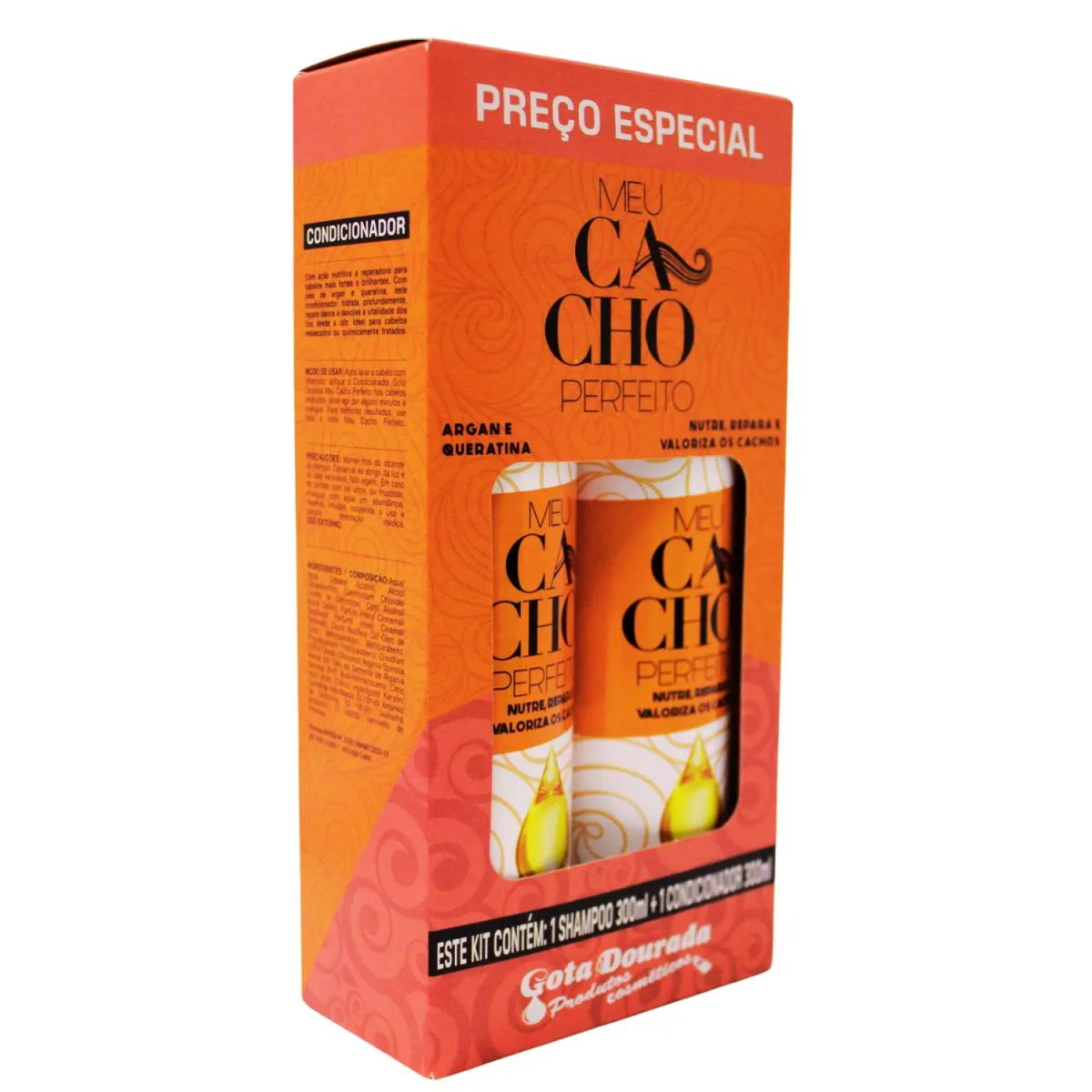 KIT GOTA DOURADA MEU CACHO PERFEITO ARGAN E QUERATINA SHAMPOO 300ML E CONDICIONADOR 300ML
