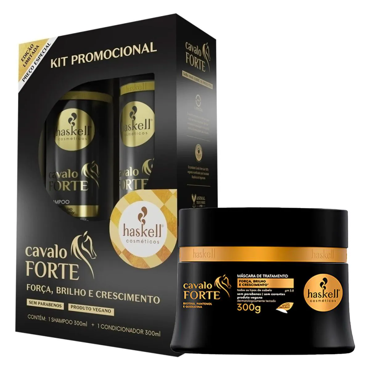Kit Haskell Cavalo Forte Pack Shampoo e Condicionador 300Ml + Máscara 300G