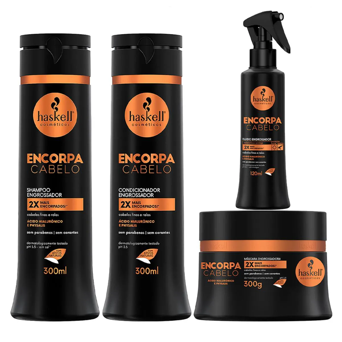 Haskell Encorpa cabelo shampoo + condicionador + máscara + Fluido (4 Produtos)
