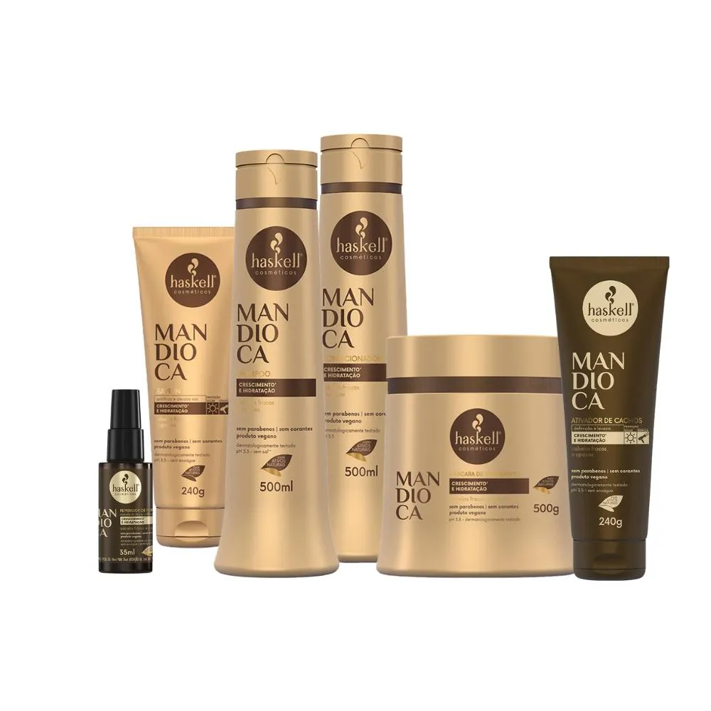 Kit Haskell Mandioca 500ml Completo + Ativador 240g + Brinde
