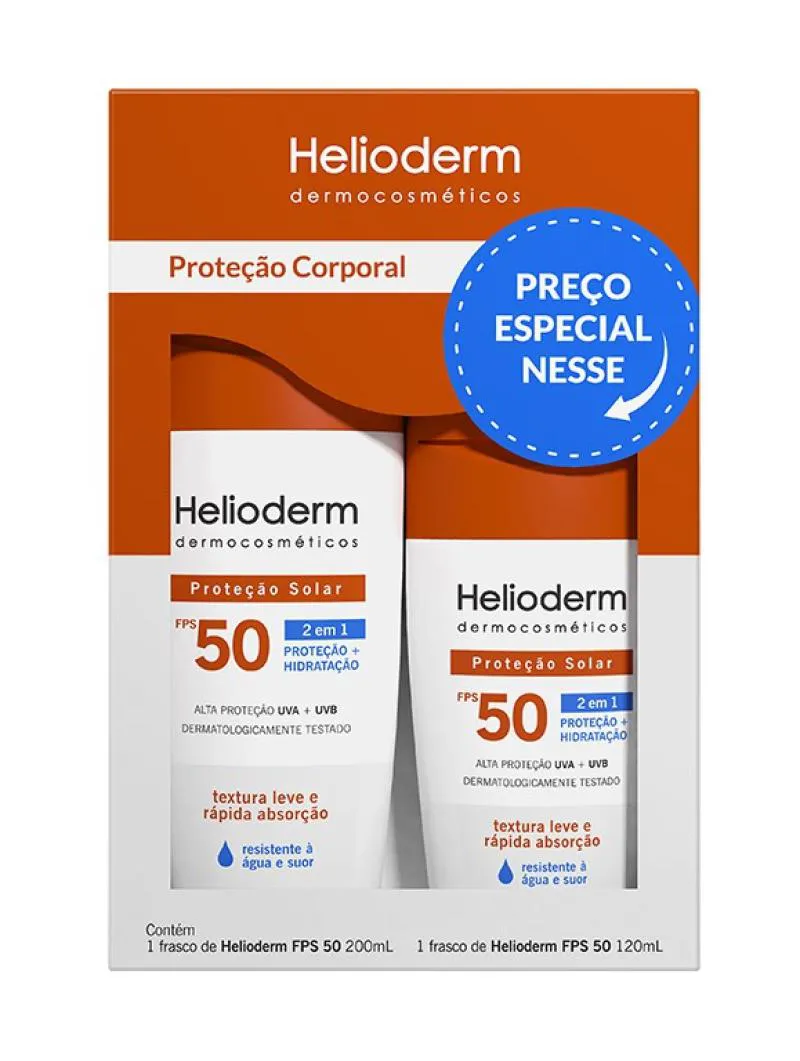 Kit Helioderm Família protetor solar Corporal Fps50 Com 200ml + 120ml