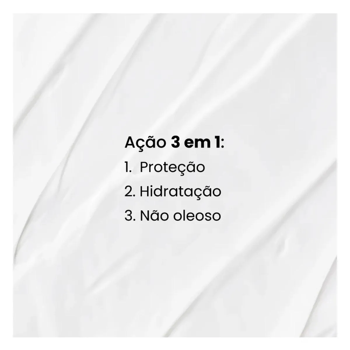 - Textura leve, rápida absorção e não oleoso.