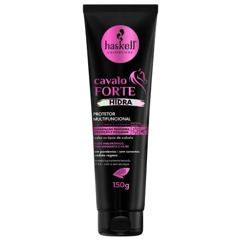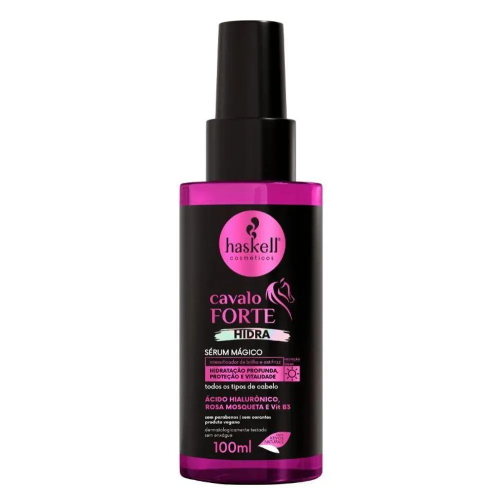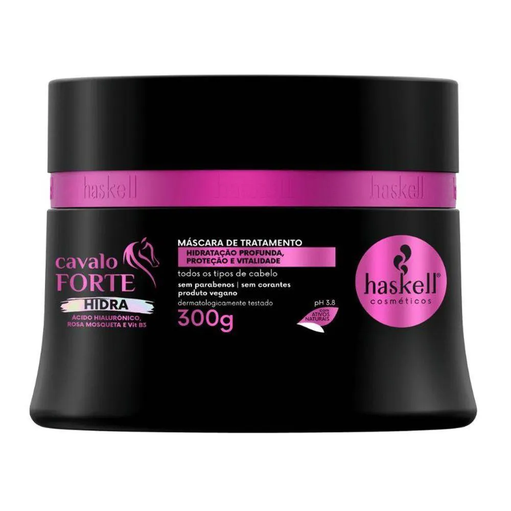 Experimente o melhor do Cavalo Forte aliado ao poder da hidratação com o Kit Hidratação e Crescimento Cavalo Forte Hidra Haskell. Enriquecida com ácido hialurônico, rosa mosqueta e B3, esta linha promove uma hidratação intensa que age profundamente na fibra capilar, prevenindo o ressecamento e proporcionando vitalidade, proteção, força e brilho aos cabelos. O Kit Hidratação e Crescimento Cavalo Forte Hidra Haskell é composto por shampoo Cavalo Forte Hidra 300ml; condicionador Cavalo Forte Hidra 300ml; máscara de Tratamento Cavalo Forte Hidra 300g; Fluido Hidratante Cavalo Forte Hidra 120ml; Protetor Multifuncional Cavalo Forte 150g; Sérum Mágico Cavalo Forte Hidra 100ml. Direção olfativa: Cítrico frutal. Indicação: Para todos os tipos de cabelo DÚVIDAS FREQUENTES: Qual a validade do produto? Haskell tem validade de 2 anos a partir da data de fabricação. Tem em estoque? Temos todos os nossos produtos disponíveis para . Produto? Adquirido diretamente do distribuidor autorizado Haskell. personalizado? Elaboração de kits sob medida. OBSERVAÇÕES SOBRE A COMPRA: Mimos e + mimos e com o pedido sempre tem um cupom! Sabia!? Compras efetuadas até as 14 hrs serão enviadas no mesmo dia. Compras efetuadas sexta-feira após as 14 hrs serão enviadas no dia útil seguinte. Todos os produtos são enviados com . Caso seu produto chegue não se preocupe, fale com a gente! NA