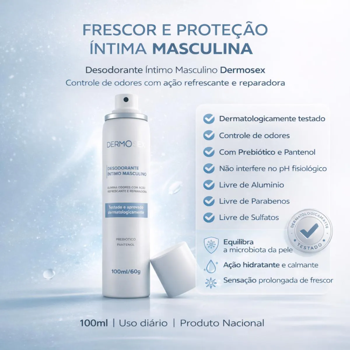 DESODORANTE ÍNTIMO MASCULINO DERMosex 100ml – Proteção, Frescor e Conforto Diário