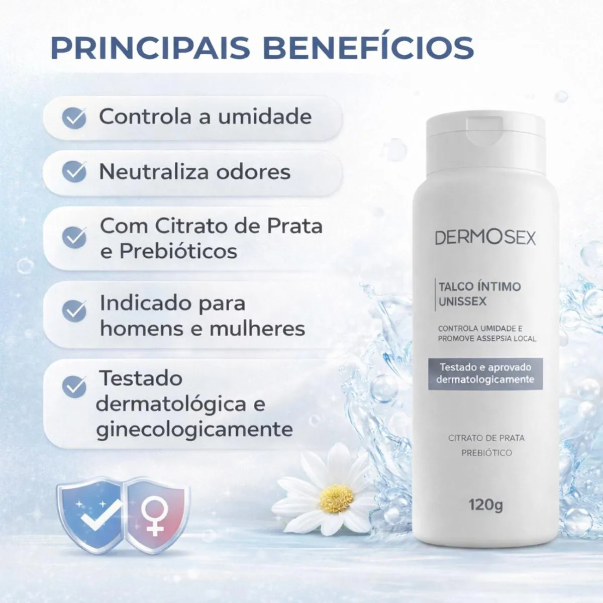 Indicado para região íntima masculina e feminina. Auxilia no controle da umidade e ajuda a manter a pele seca e confortável ao longo do dia. Ideal para uso após atividades físicas, dias quentes ou rotina intensa.