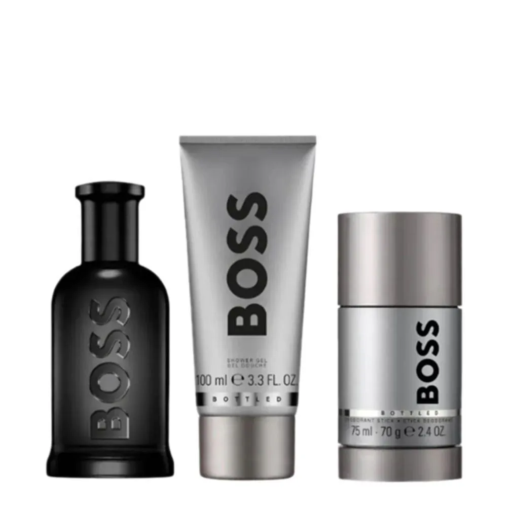 O Kit Hugo Boss Bottled Parfum Masculino - Eau de Parfum 100ml + Gel de Banho 100ml + Desodorante em Bastão 75ml é a escolha ideal para homens que buscam uma fragrância intensa e uma rotina de cuidados refinada, com um aroma distintivo e design sofisticado.
